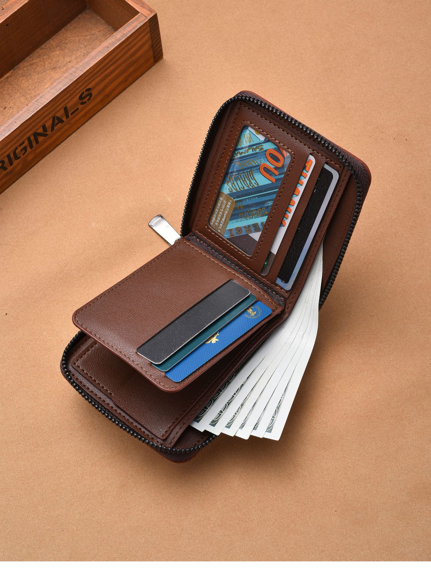 Cartera corta de hombre retro múltiples ranuras estilo europeo y americano