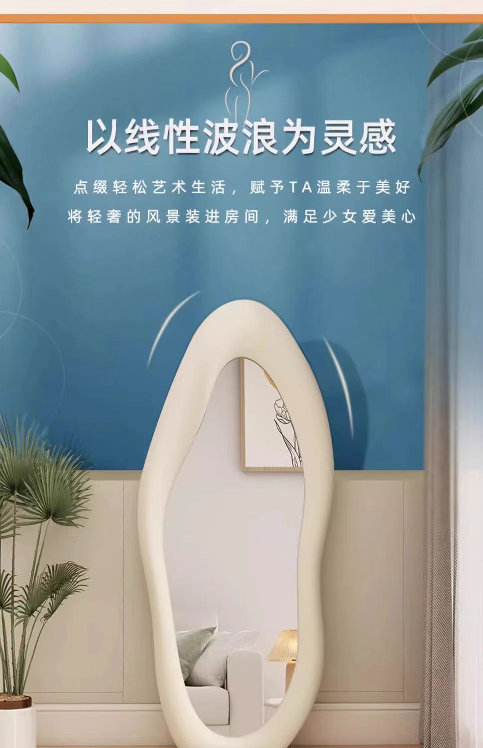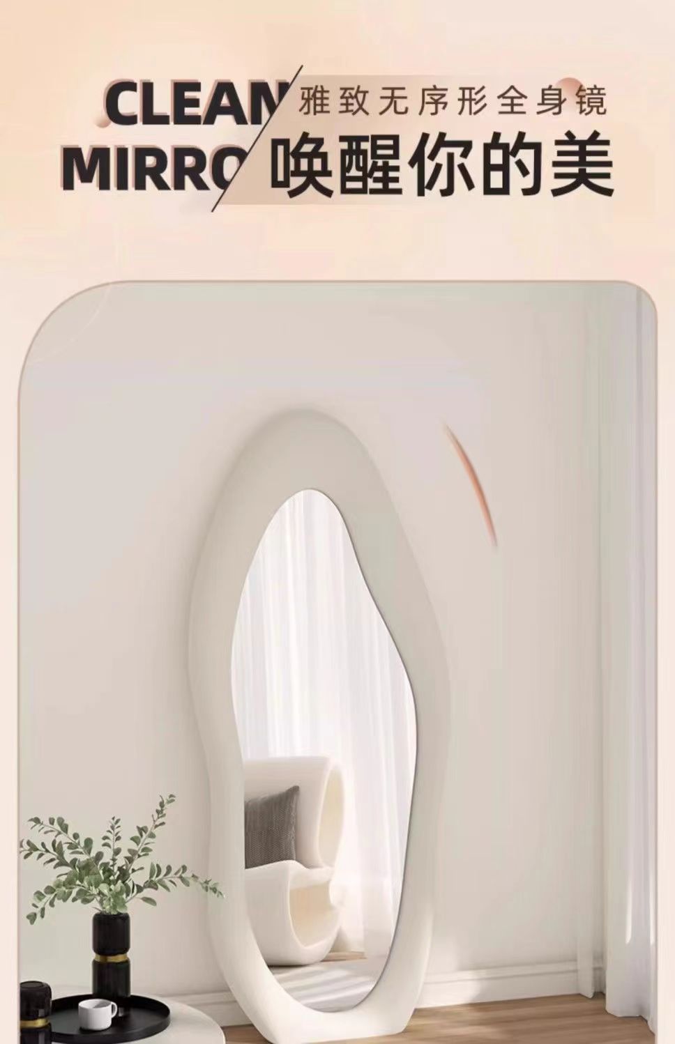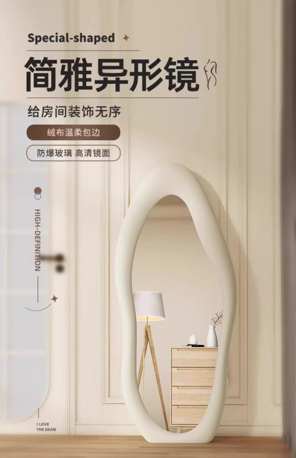 Espejo de cuerpo completo francés, diseño irregular, dormitorio hogar