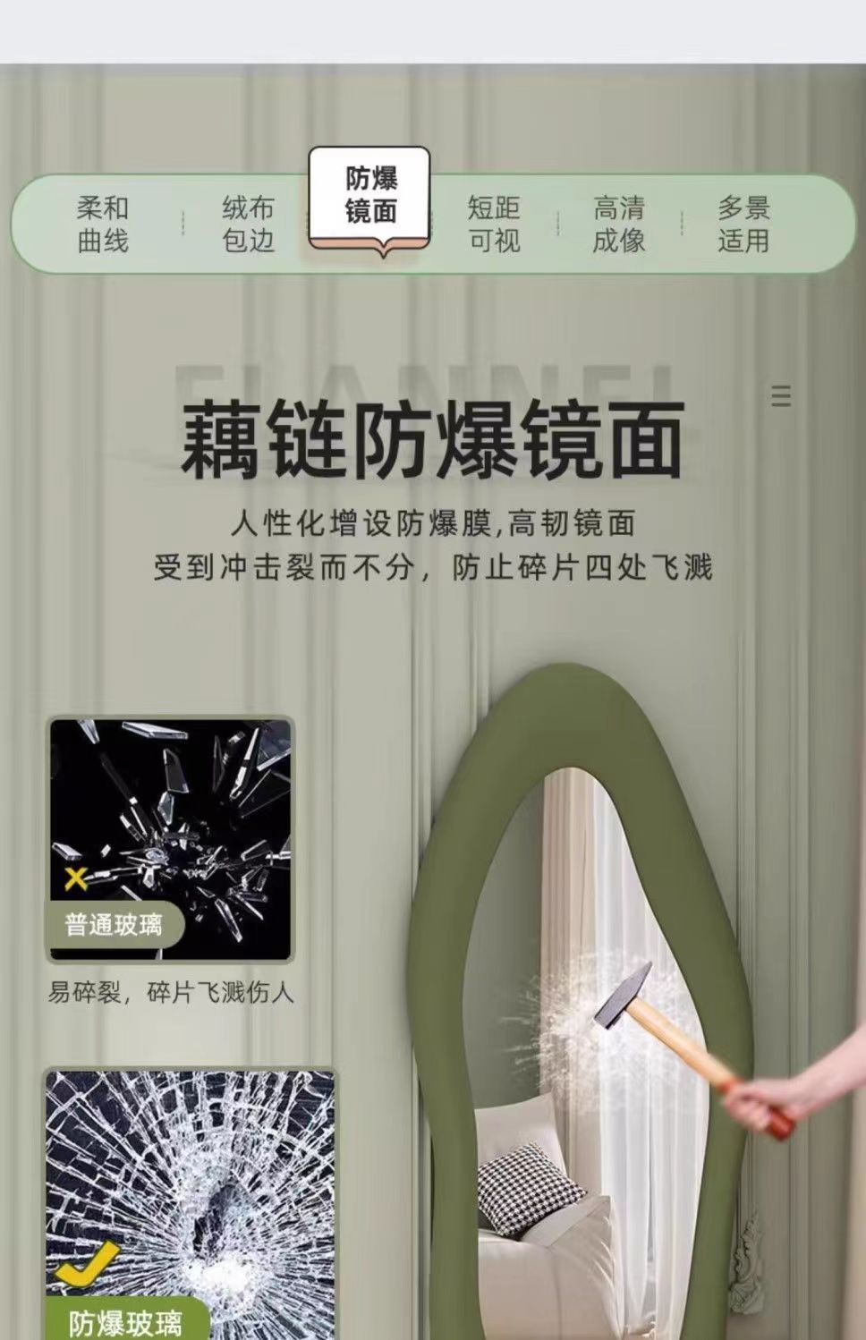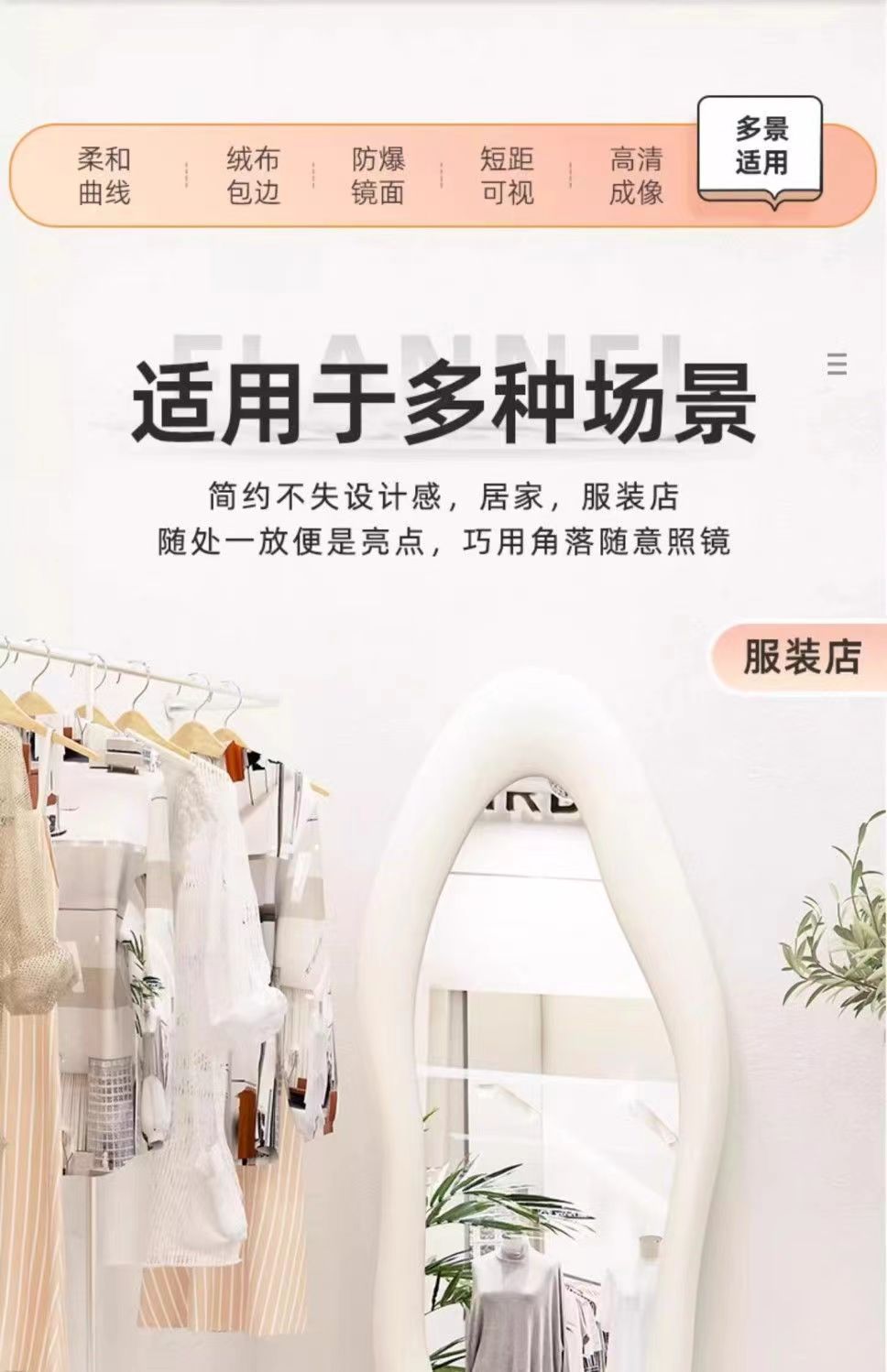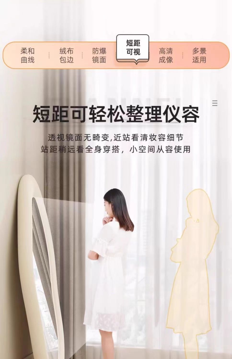 Espejo de cuerpo completo francés, diseño irregular, dormitorio hogar