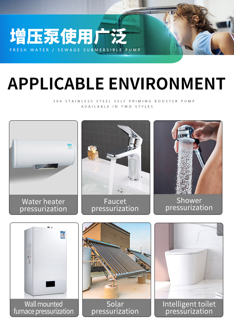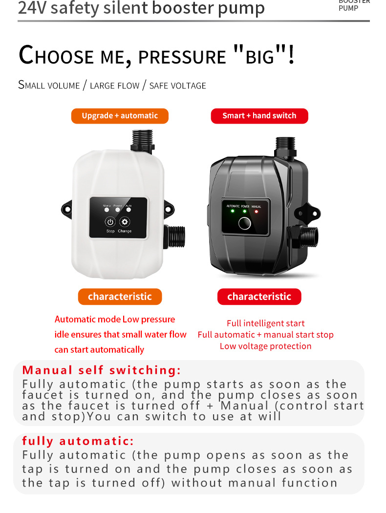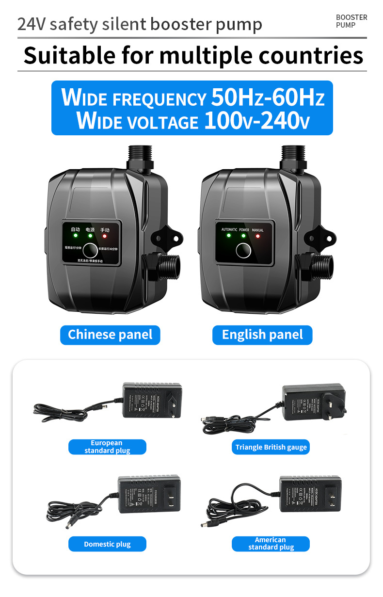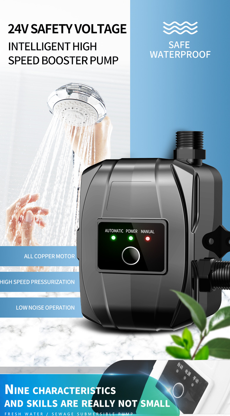 Bomba de refuerzo automática doméstica 110V/220V, estándar americano, para ducha y calentador de agua