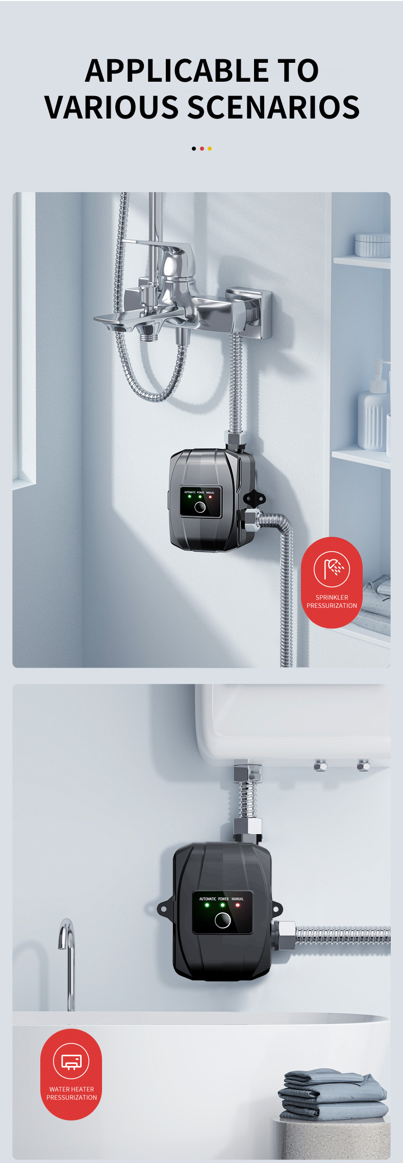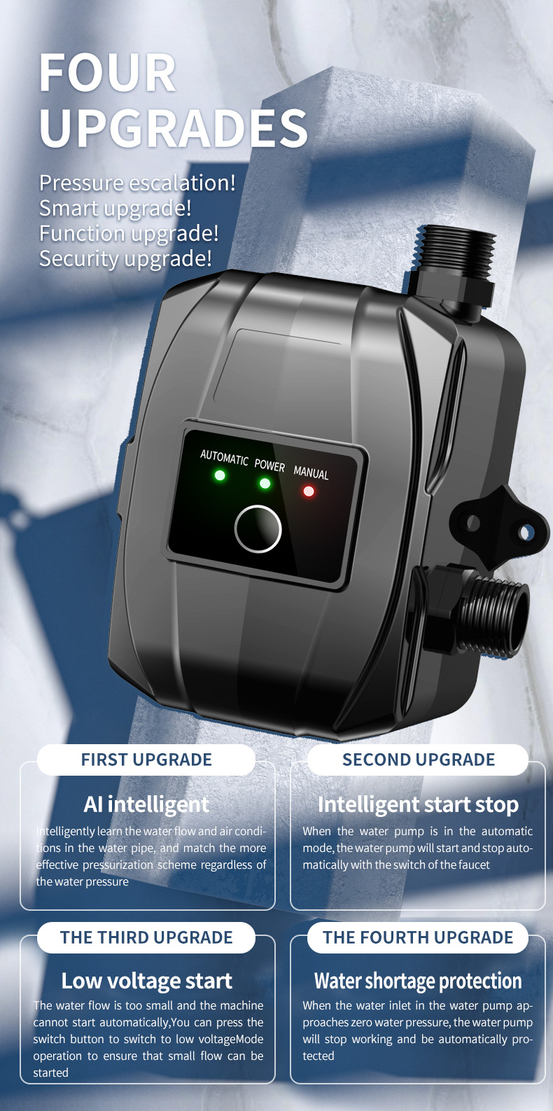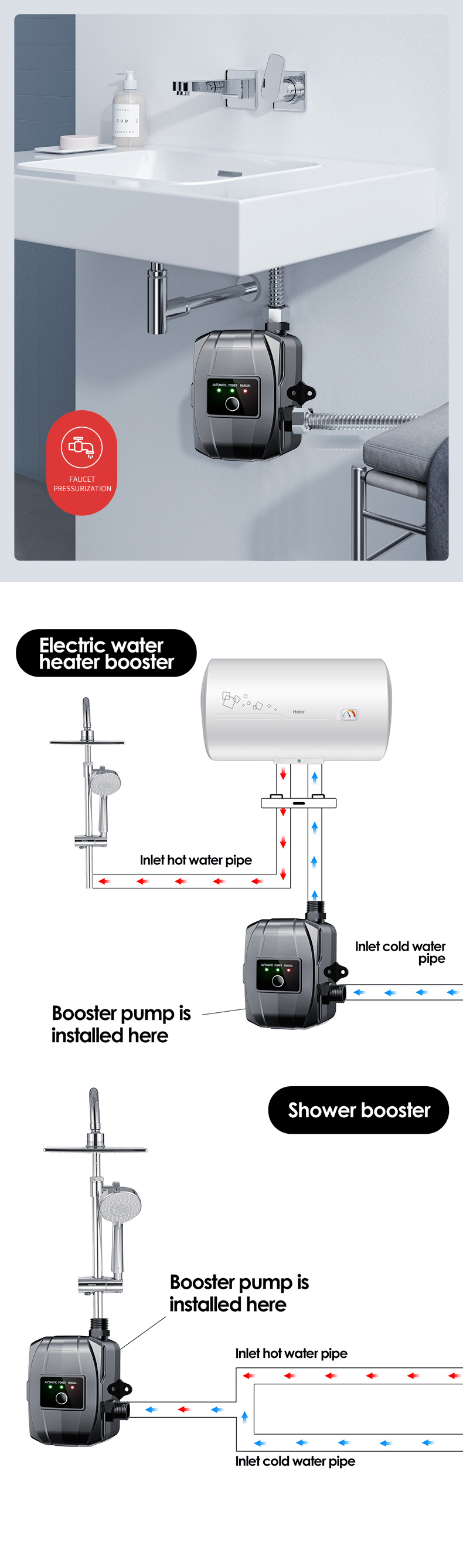 Bomba de refuerzo automática doméstica 110V/220V, estándar americano, para ducha y calentador de agua