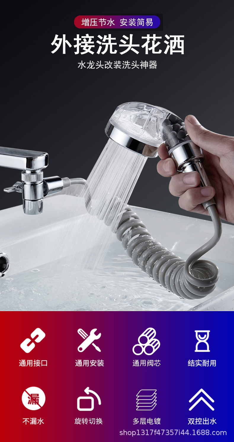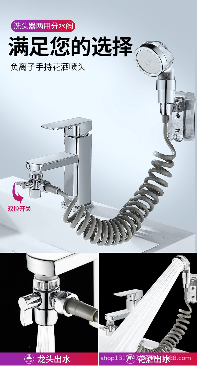 Ducha de Mano para Lavabo, 3 Velocidades, Llave de Parada, Extensión para Baño