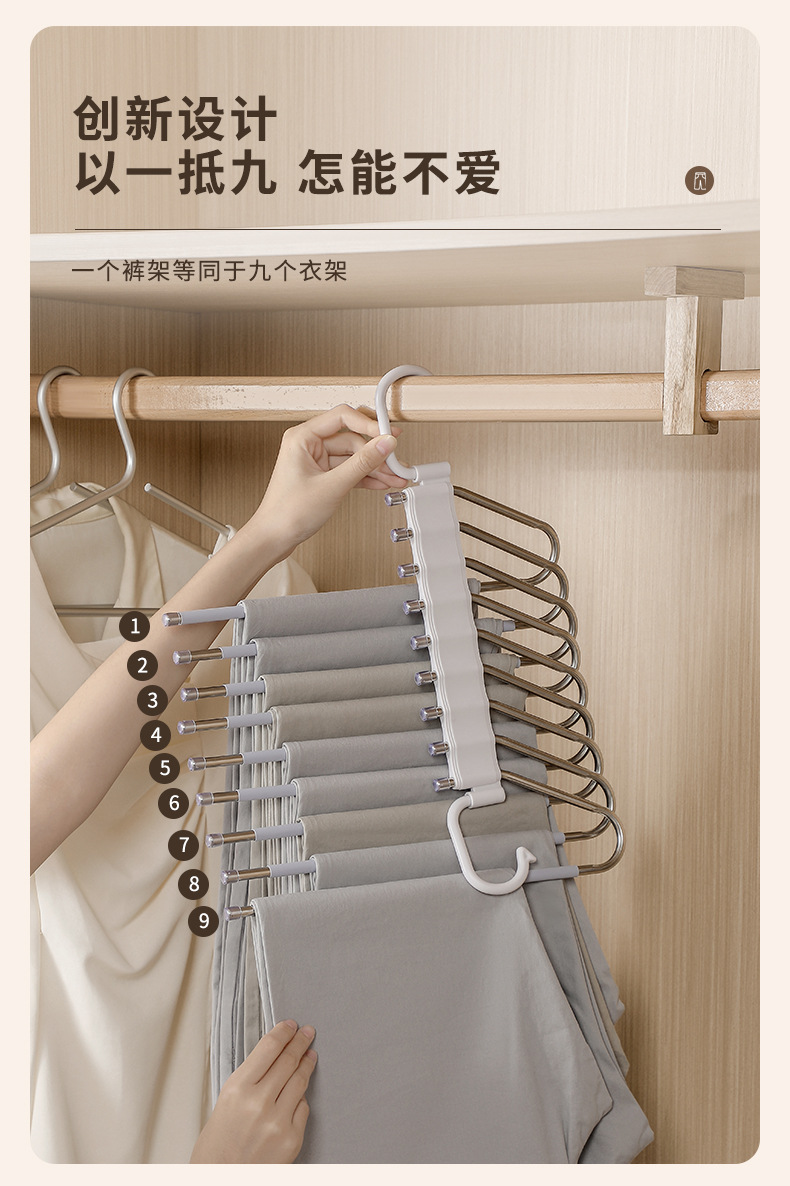 Percha para pantalones acero inoxidable - Antideslizante, plegable, clip sin costuras, para hogar/tienda