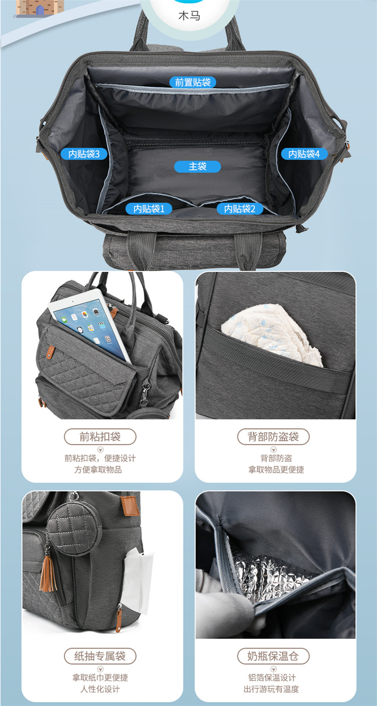 Mochila maternidad tipo momia, ligera, de gran capacidad y térmica, portátil y multifuncional.