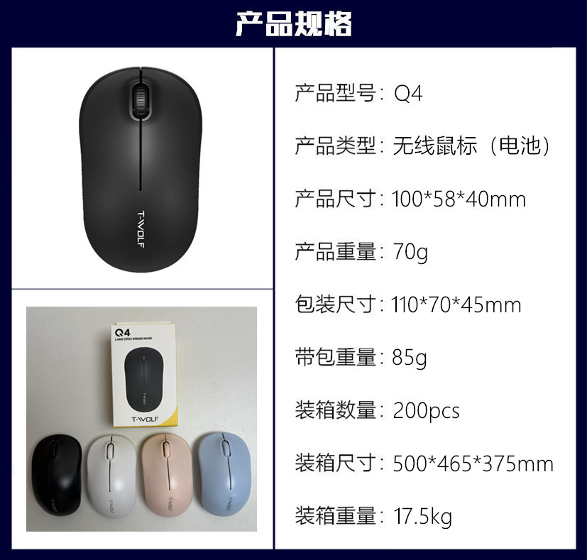 Ratón inalámbrico Q4, compacto y silencioso, para oficina
