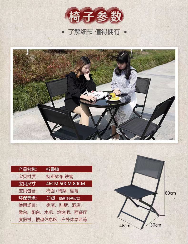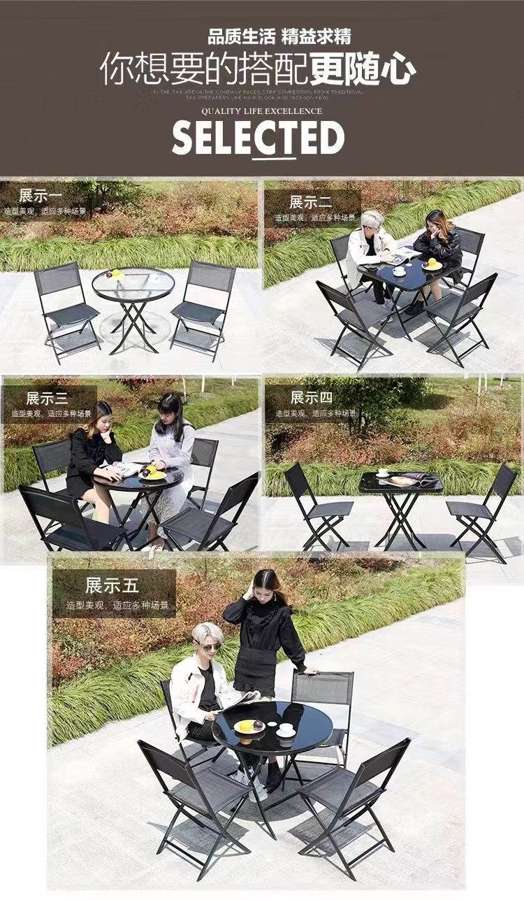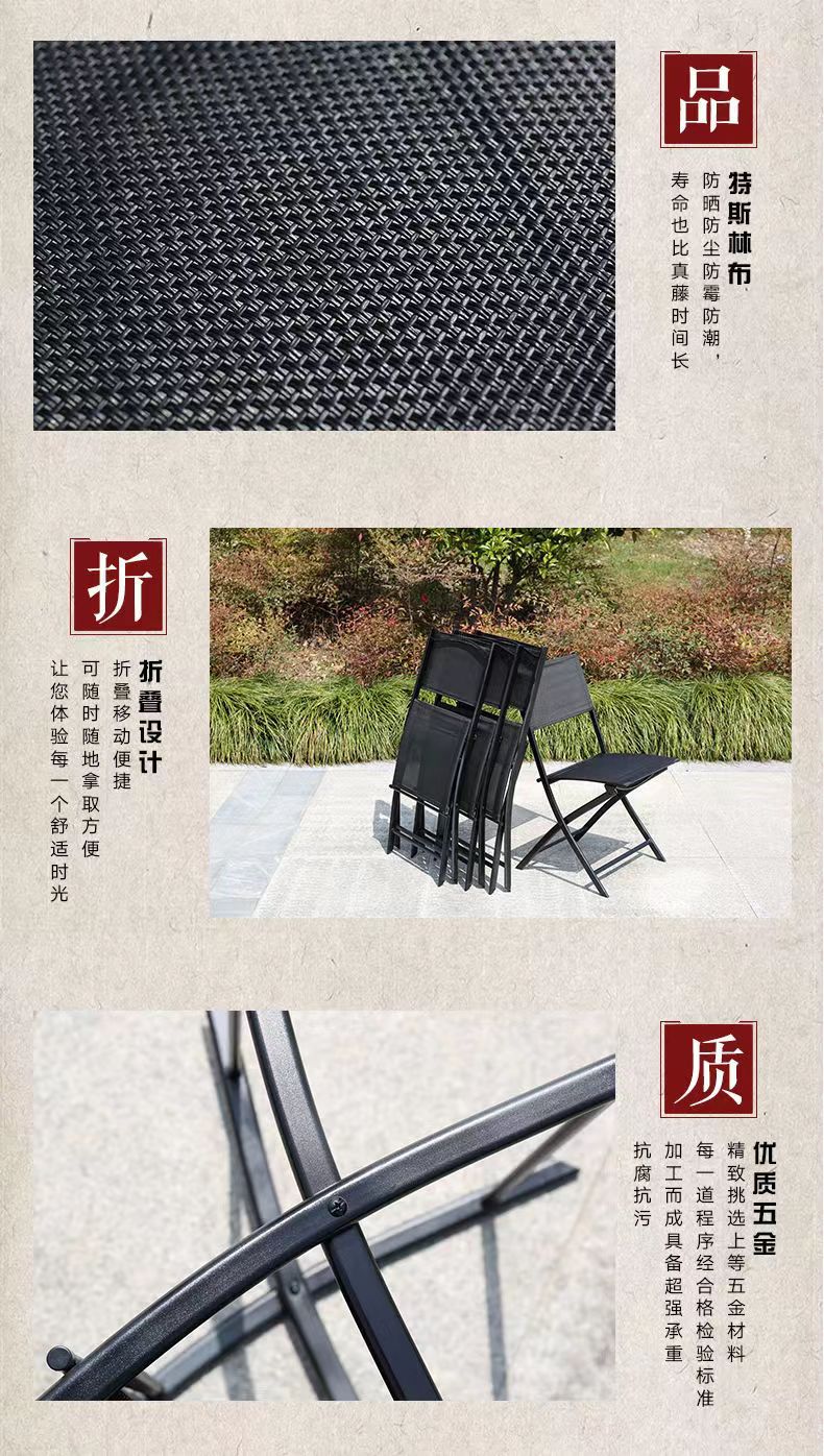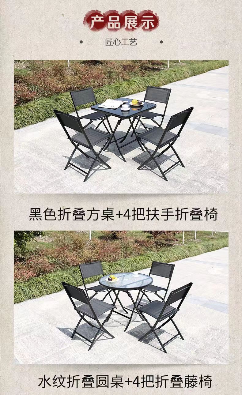 Conjunto plegable de mesa y sillas de hierro para exteriores