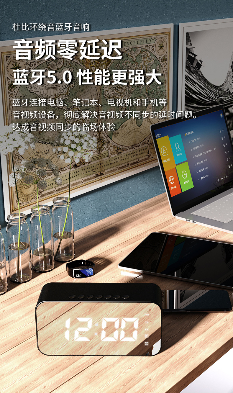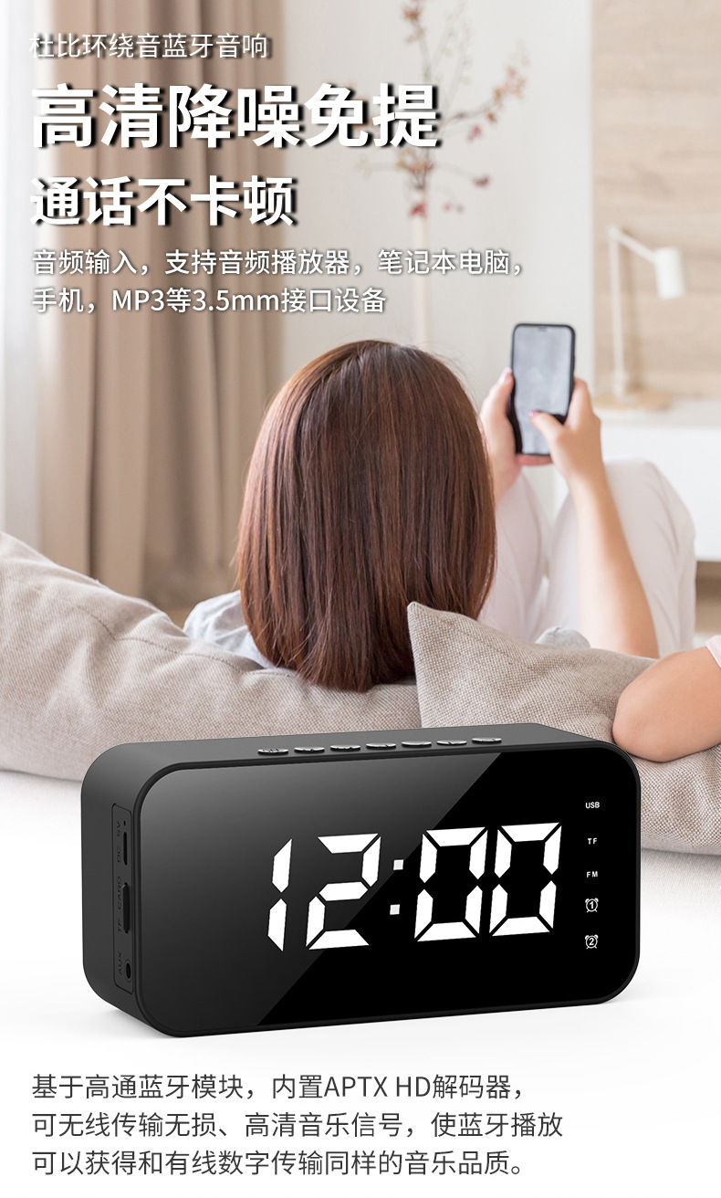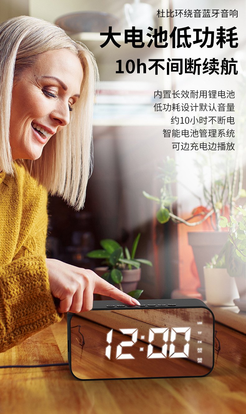 Altavoz Bluetooth con reloj y despertador - Multifunción, para interior y exterior