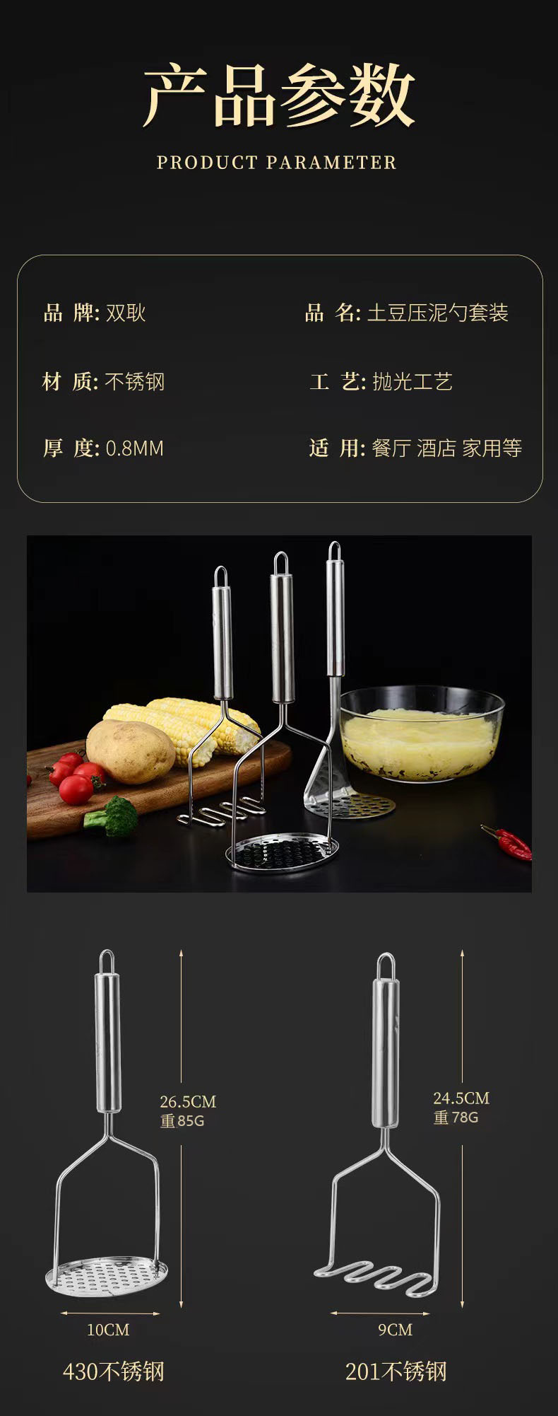 Acero inoxidable Potato Mascher bebé suplemento de alimentos manual Mascher cocina gadget