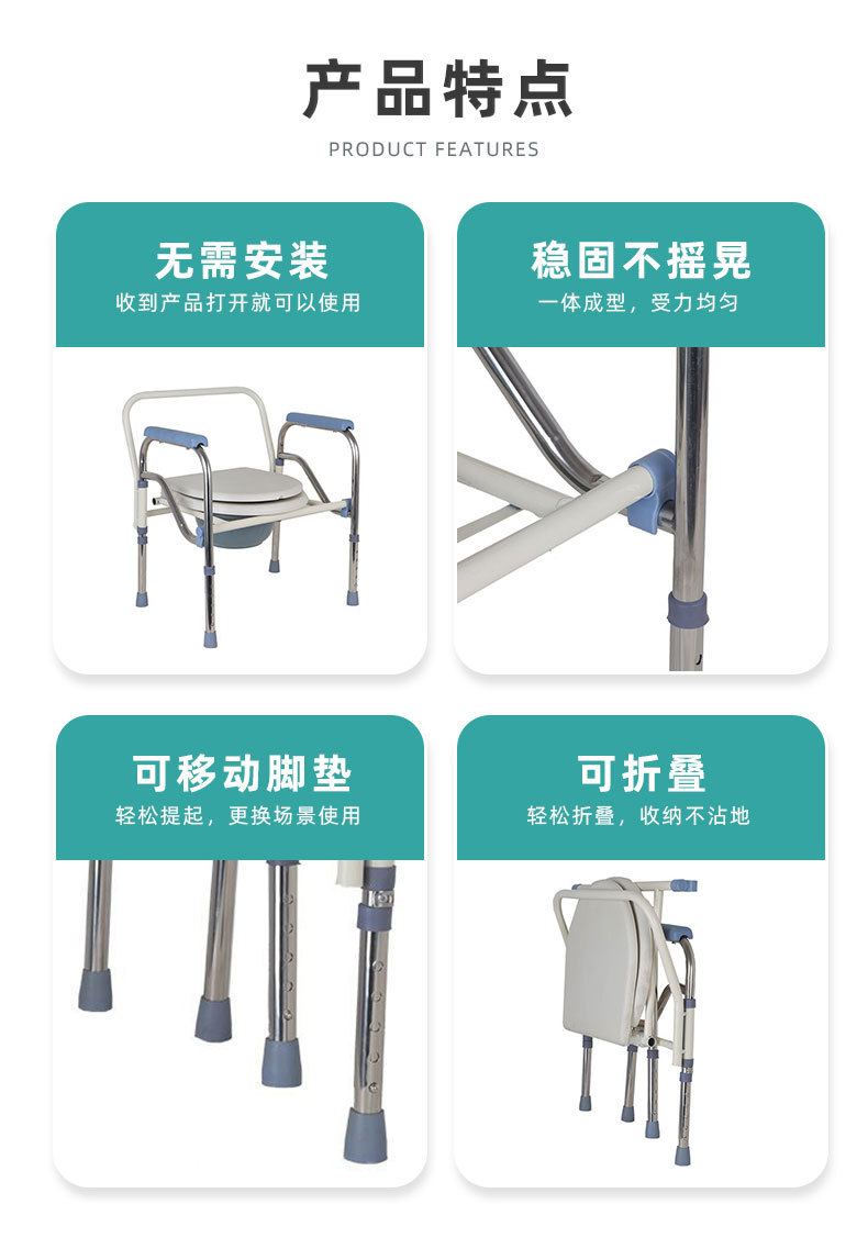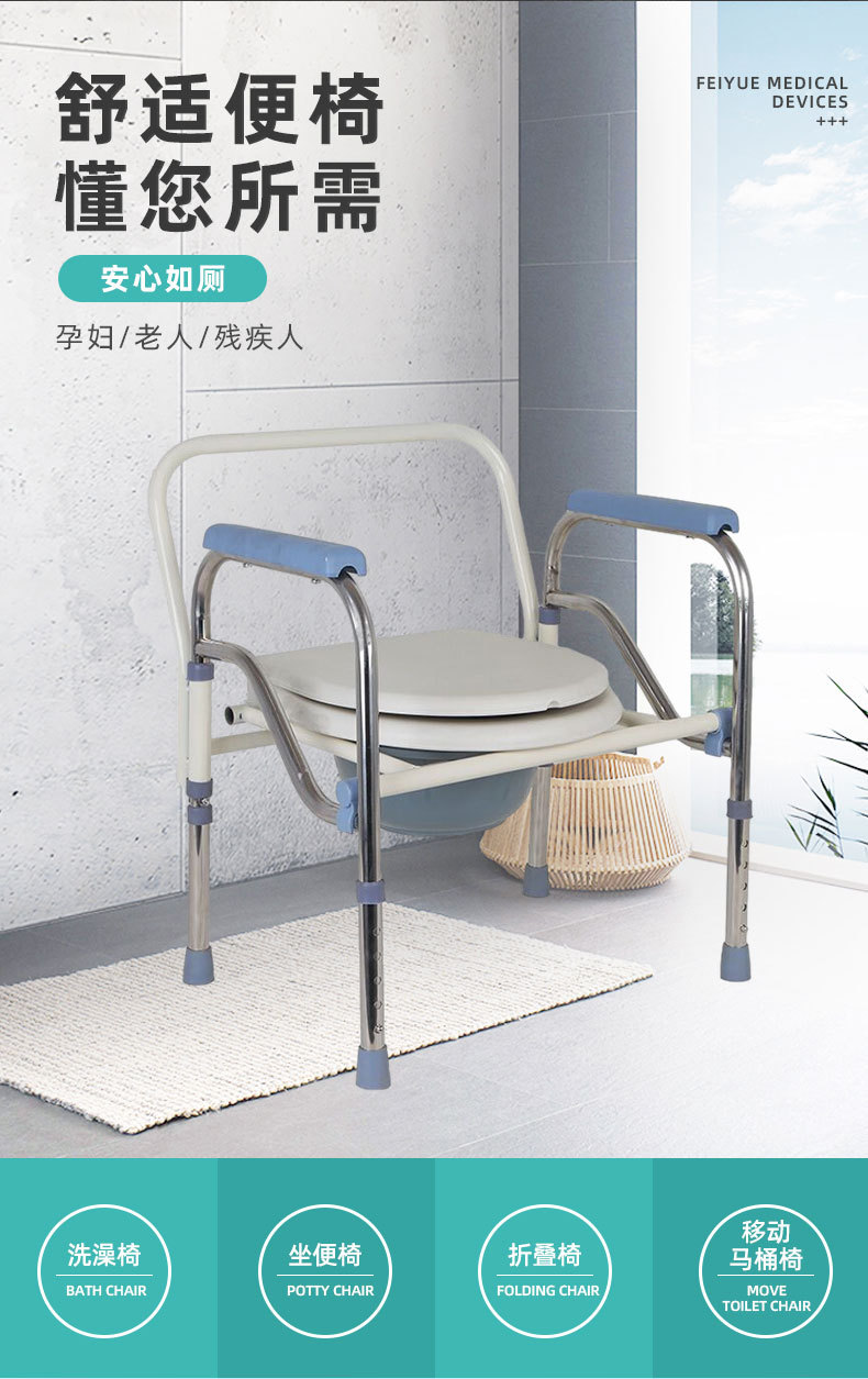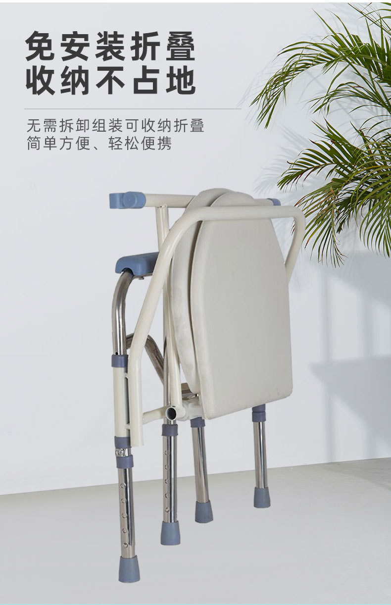 Silla sanitaria de acero inoxidable reforzada, plegable y portátil, asiento de ducha y WC antideslizante