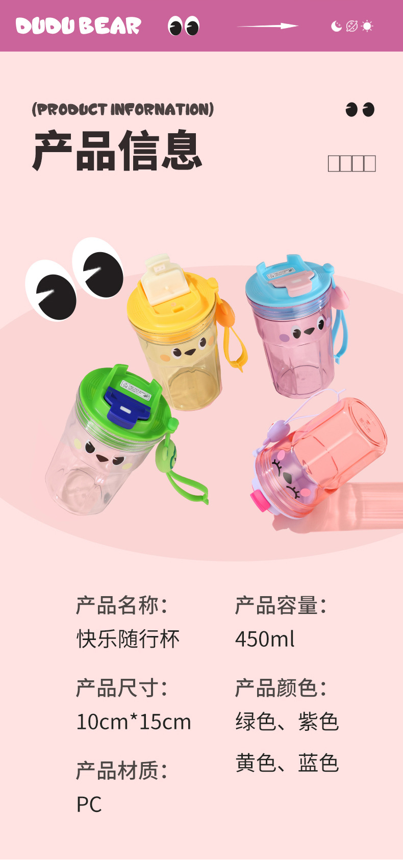 Taza de plástico portátil, diseño simple, con pajita, regalo ideal, para hombres y mujeres