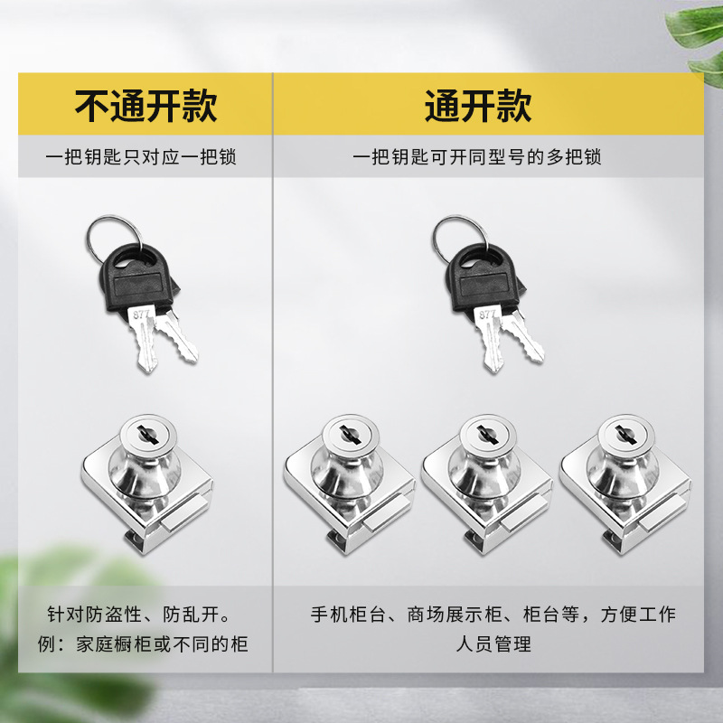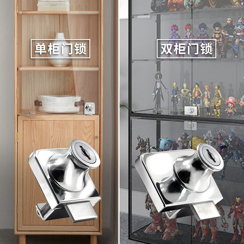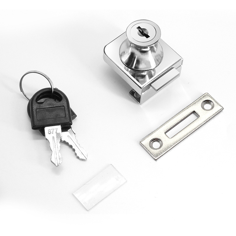 Cerradura para vitrinas y gabinetes de vidrio – Modelos 409 doble puerta, 407 escaparate y 328 diente (venta al por mayor)