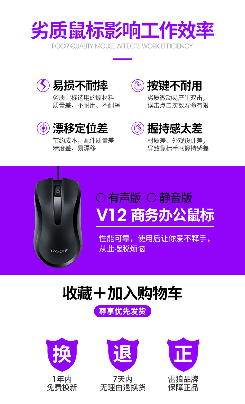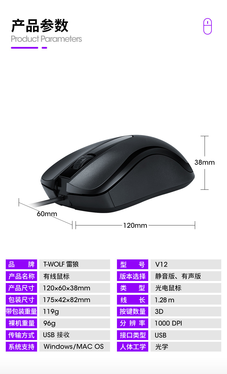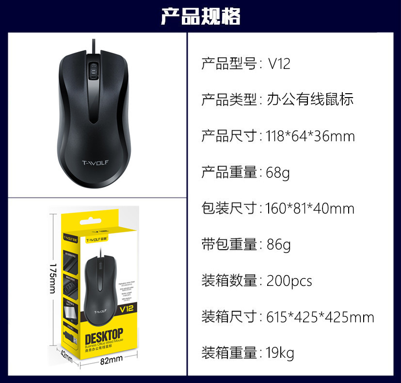 V12 Wired Mouse Business Office Desktop Laptop Universal USB