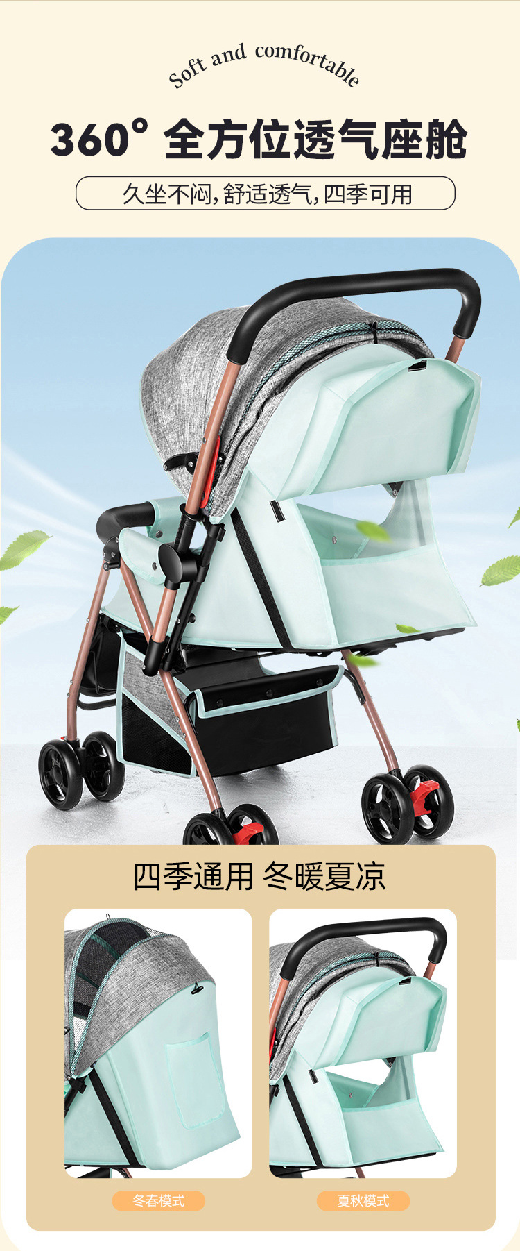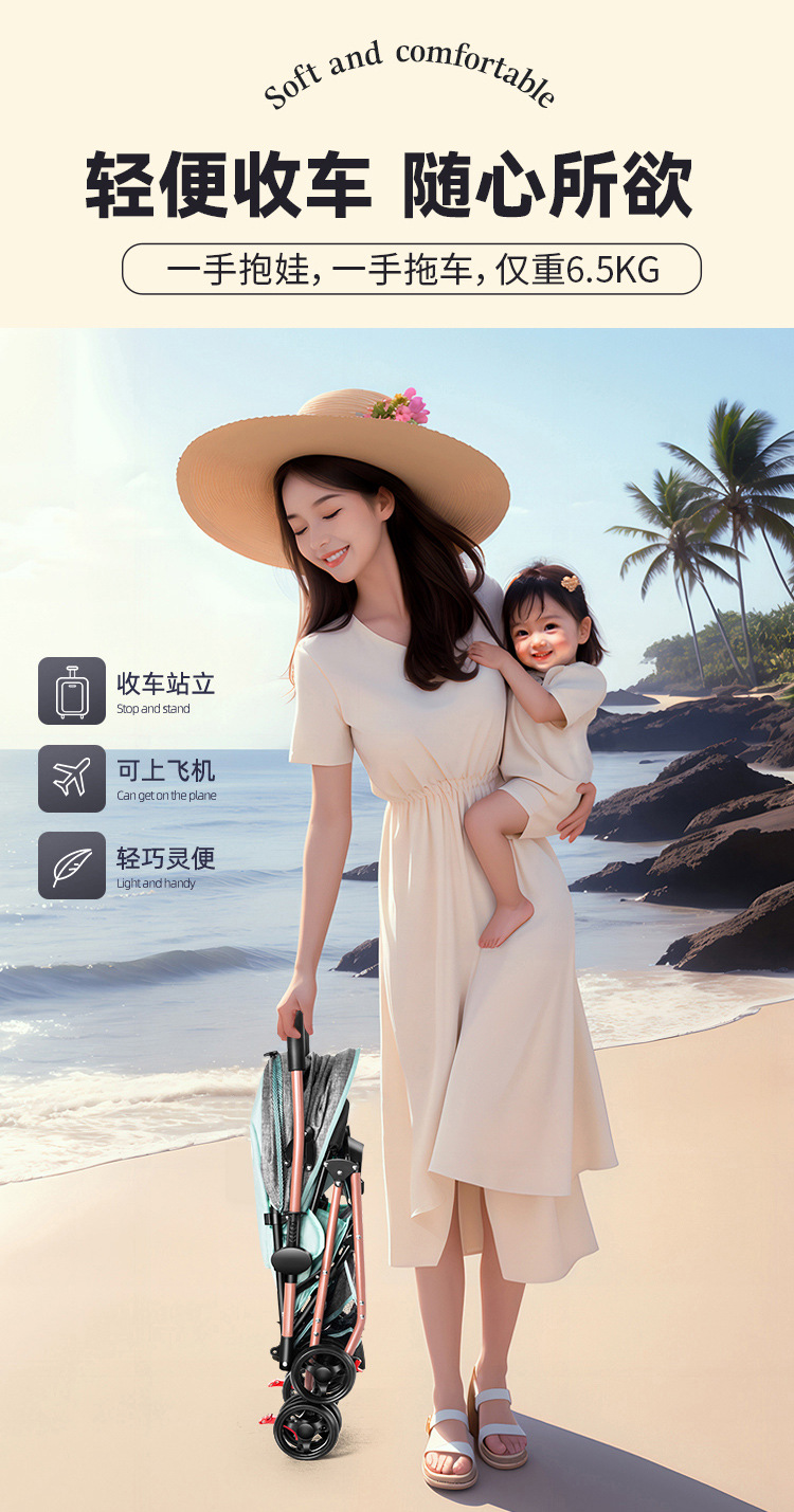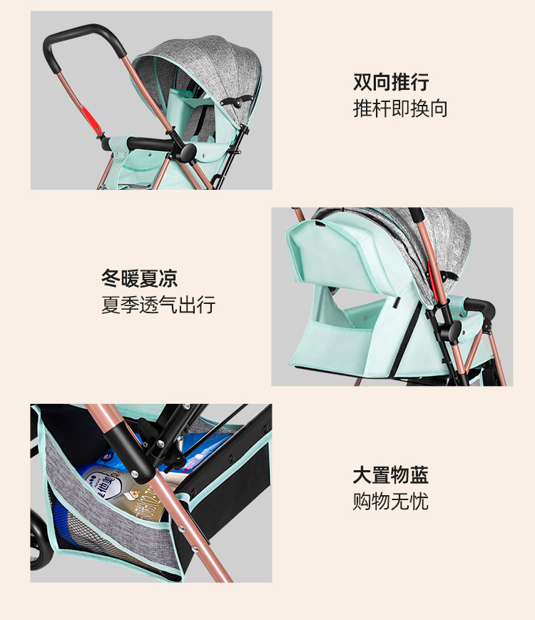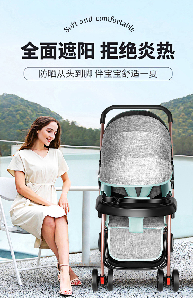 Carrito de bebé se puede sentar y acostar 0 a 3 años de edad ligero plegable con un botón para los niños cuatro ruedas caminando carro de bebé