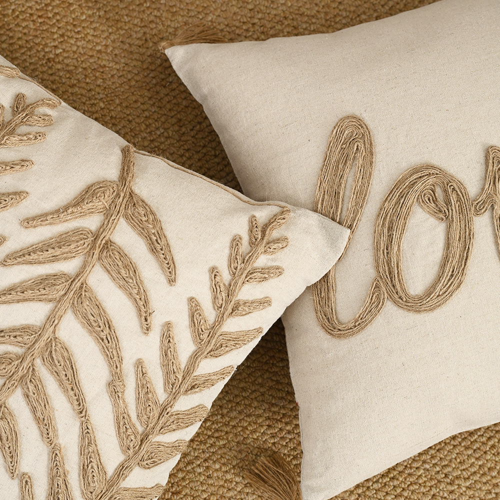 Funda de almohada bordada con cuerda de cáñamo nórdico transfronterizo Espiga colgante de cuatro esquinas Almohada pastoral retro Sala de estar Almohada de sofá Almohada de cintura