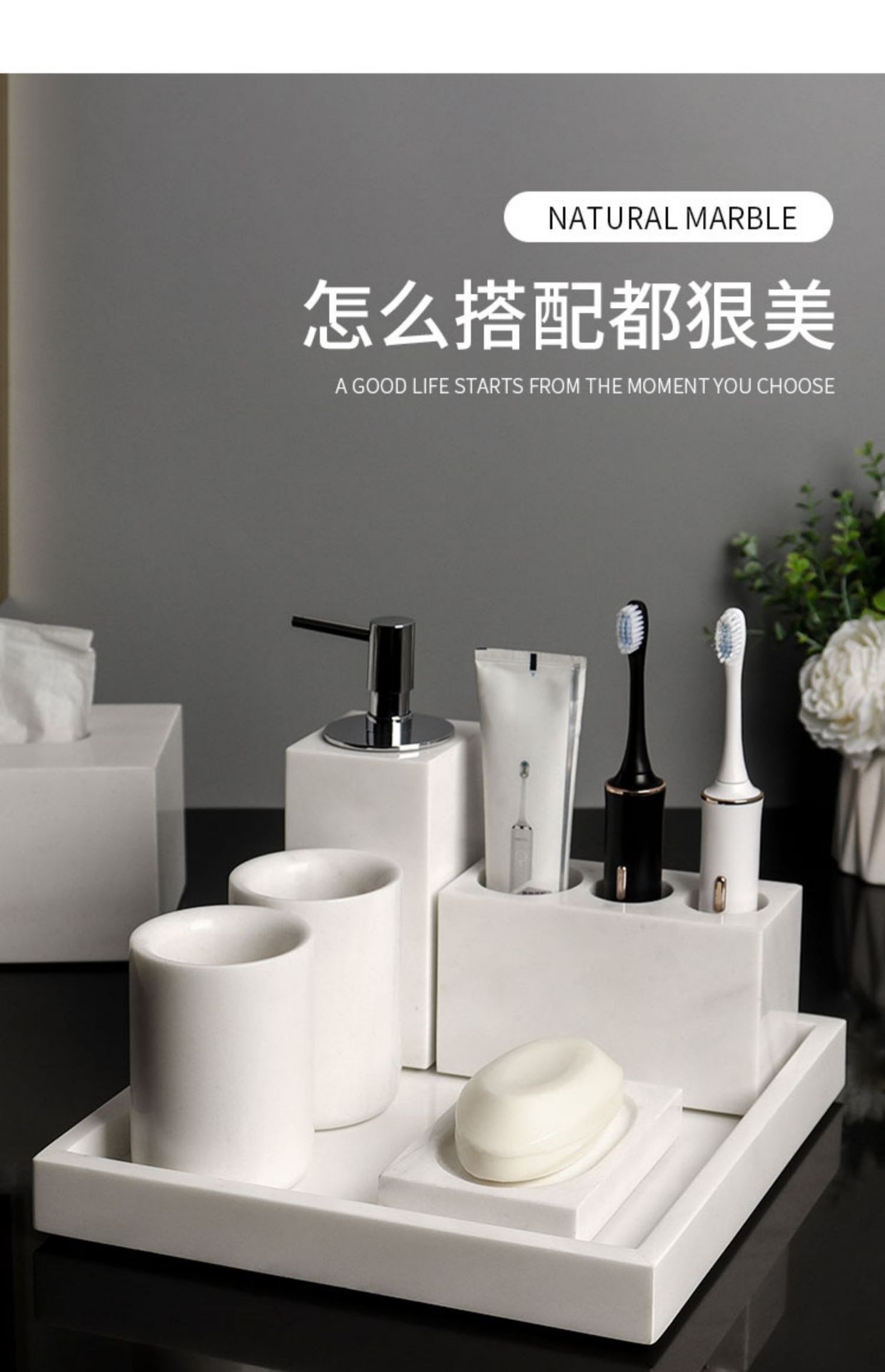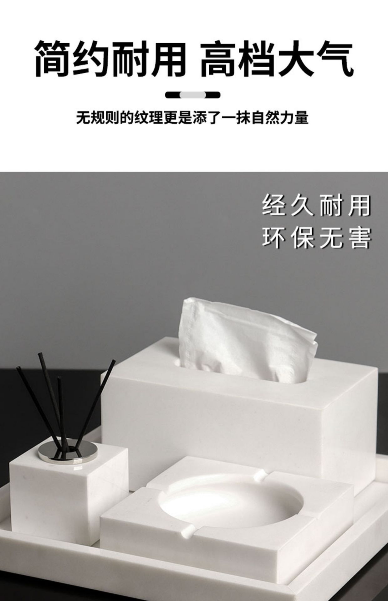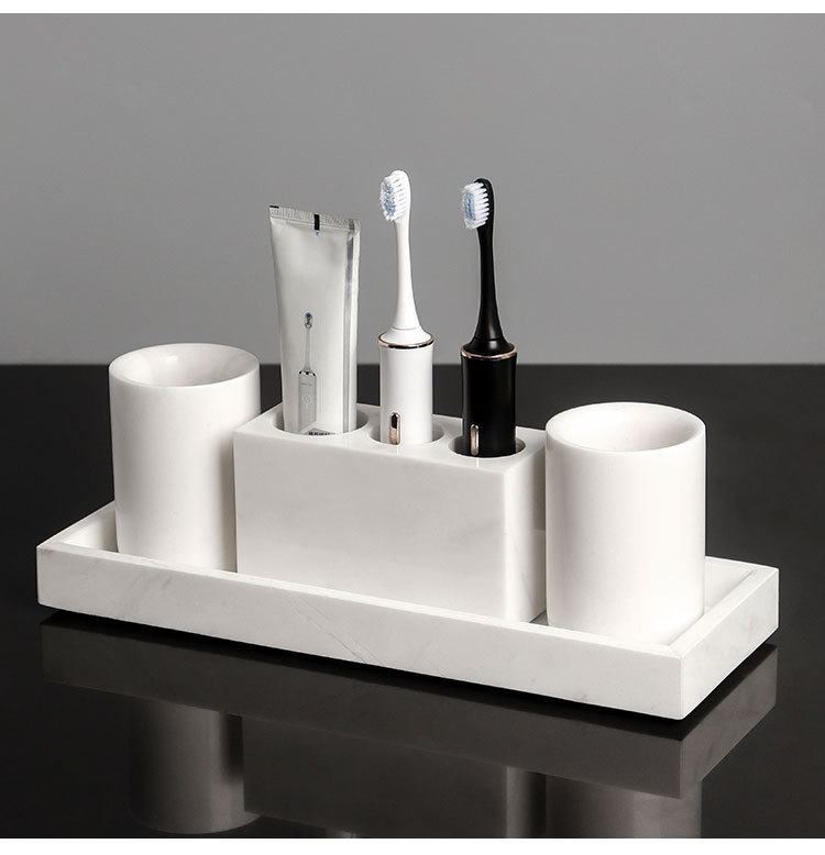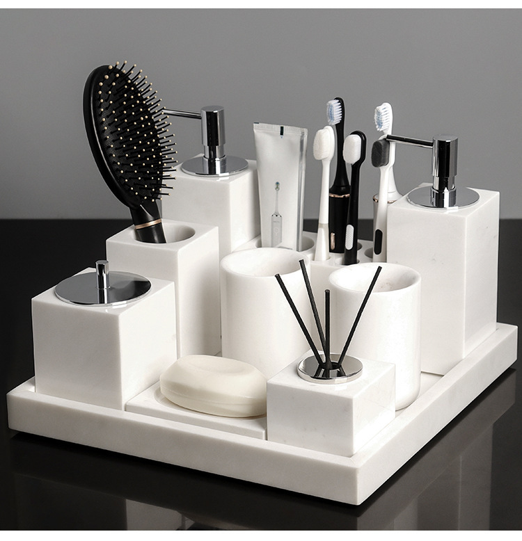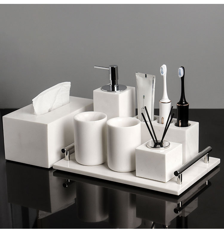Juego de lavado de baño de mármol de lujo ligero, bandeja de baño, caja de pañuelos, artículos de baño de hotel de estilo europeo