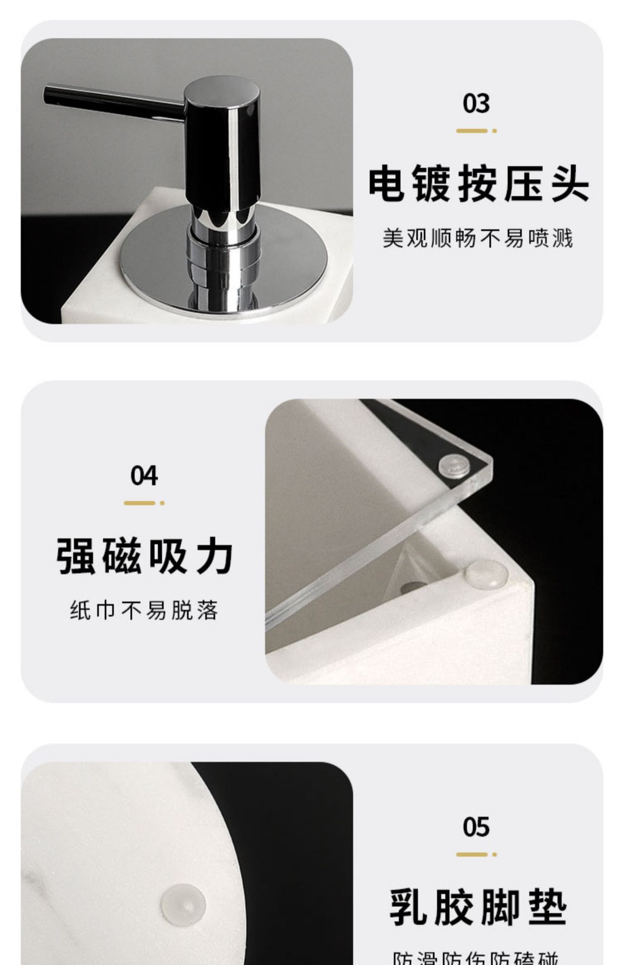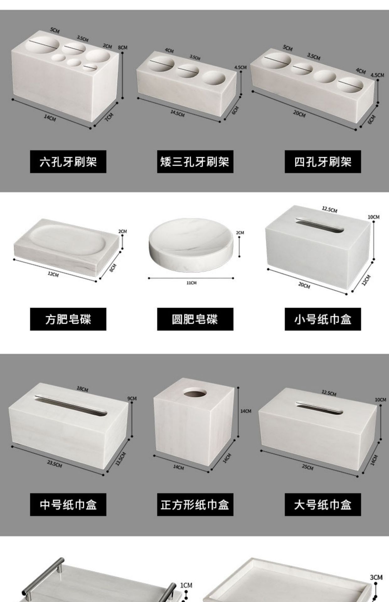 | Especificaciones | Botella de loción,Botella de loción (tipo espumoso),Botella de loción redonda,Botella de loción redonda (tipo espumoso),Taza de enjuague bucal,Jabón cuadrado,Jabón redondo,Marco de un solo orificio,Caja de almacenamiento de doble rejilla,Marco corto de tres agujeros,Marco alto de tres agujeros,Marco corto de cuatro agujeros,Marco corto de cinco agujeros,Marco alto de seis agujeros,Caja de firma de algodón cuadrado,Caja de firma de algodón redondo,Palillo de dientes,Botella de aromaterapia,Bandeja pequeña,Bandeja pequeña de una pieza,Bandeja pequeña ovalada,Bandeja larga,Bandeja larga de una pieza,Bandeja en ángulo recto,Bandeja de ángulo recto de una pieza,Bandeja de manija,Bandeja redonda,Bandeja cuadrada pequeña,Bandeja cuadrada,Caja pequeña de pañuelos,Caja de pañuelos mediana,Caja grande de pañuelos,Caja de pañuelos cuadrados,★★★Este producto está hecho de mármol★★★Falso uno paga diez,↓↓↓ Los colores de los siguientes trajes son todos blancos jazz★★★Ignora el color del prefijo,Juego de tres piezas de jazz blanco verde claro A,Juego de tres piezas verde jazz blanco B,Traje de tres piezas verde jazz blanco C,Traje de tres piezas verde jazz blanco fluorescente D,Juego de cuatro piezas Lake Blue Jazz White A,Conjunto de cuatro piezas azul oscuro jazz blanco B,Juego de cuatro piezas azul jazz blanco C,Juego de cuatro piezas azul jazz blanco D,Conjunto de cuatro piezas azul pavo real jazz blanco E,Juego de cuatro piezas azul jazz blanco F,Traje de cuatro piezas morado jazz blanco G,Conjunto de cuatro piezas violeta jazz blanco H,Fucsia Jazz White Juego de cuatro piezas I,Juego de cuatro piezas de color púrpura oscuro jazz blanco J,Juego de cuatro piezas de color púrpura claro jazz blanco K,Juego de cinco piezas marrón jazz blanco A,Maroon Jazz White Juego de cinco piezas B,Juego de cinco piezas marrón claro jazz blanco C,Juego de seis piezas rojo jazz blanco A,Conjunto de seis piezas B de color raíz de loto jazz blanco,Sandía rojo jazz blanco seis piezas C,Caqui Jazz White Juego de seis piezas D,Juego de siete piezas de jengibre jazz blanco A,Juego de siete piezas B de color amarillo jazz blanco brillante,Juego de siete piezas de albaricoque jazz blanco C,Juego de siete piezas amarillo limón jazz blanco D,Juego de siete piezas naranja jazz blanco E,Juego de siete piezas F amarillo jazz blanco claro,Juego de siete piezas amarillo jazz blanco fluorescente G,Juego de siete piezas dorado jazz blanco H,Champagne Jazz Blanco Conjunto de siete piezas I,Juego de siete piezas amarillo jazz blanco J,Conjunto de siete piezas de color verde oscuro jazz blanco K,Juego de ocho piezas gris jazz blanco claro A,Juego de ocho piezas B gris oscuro jazz blanco,Conjunto de ocho piezas gris jazz blanco C,Juego de ocho piezas plateado jazz blanco D,Conjunto de ocho piezas negro jazz blanco E,Rosa rojo jazz blanco nueve piezas A,Juego de nueve piezas rosa jazz blanco B,Juego de diez piezas azul marino jazz blanco A,Conjunto de diez piezas azul jazz blanco B |