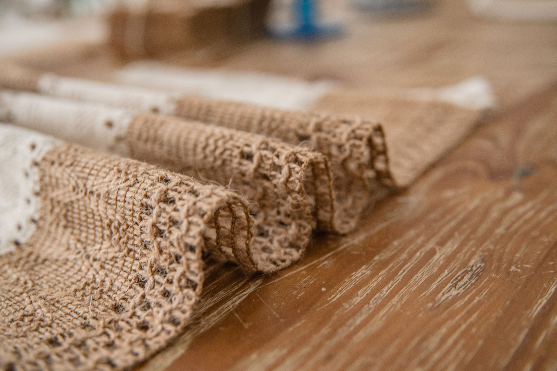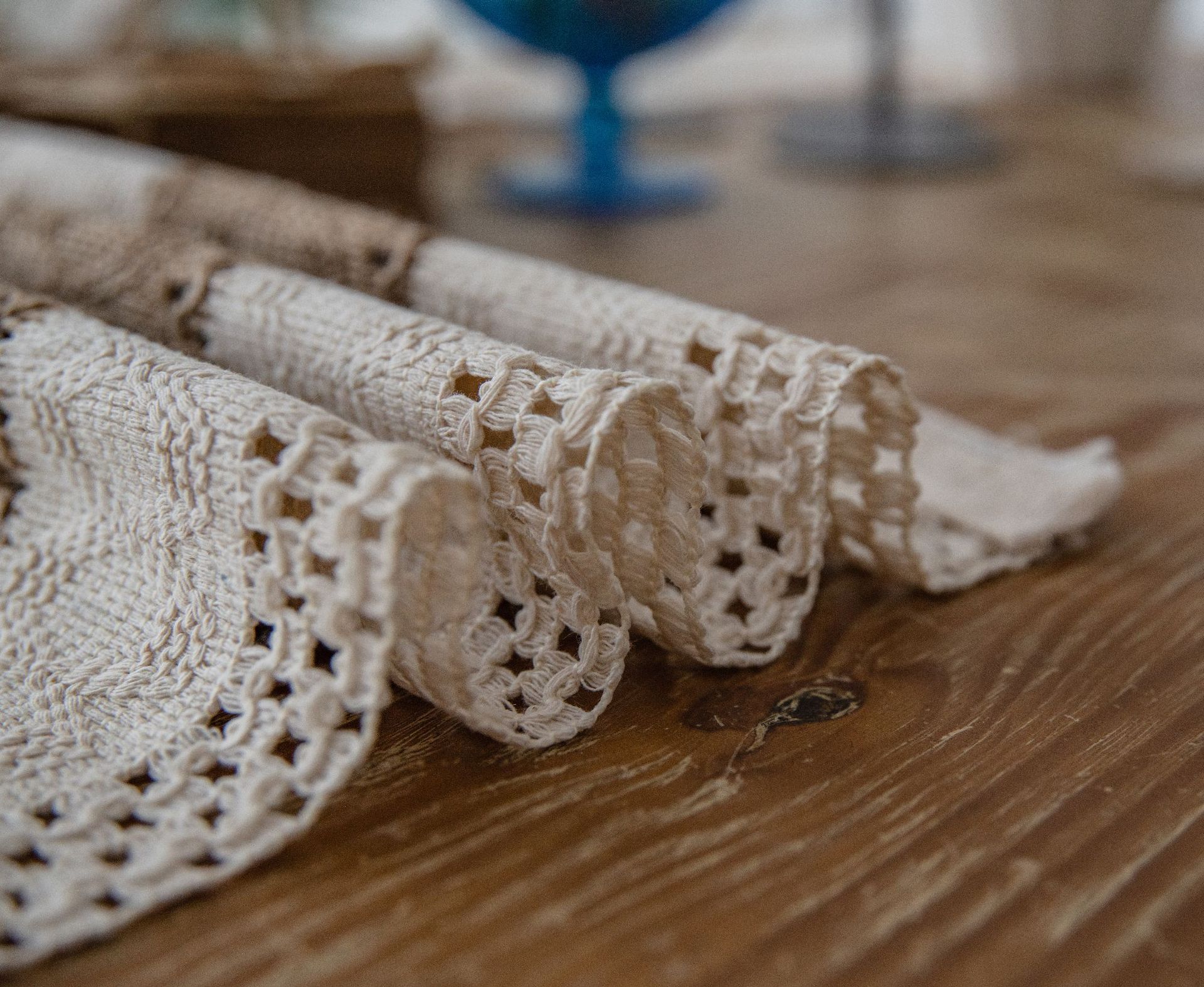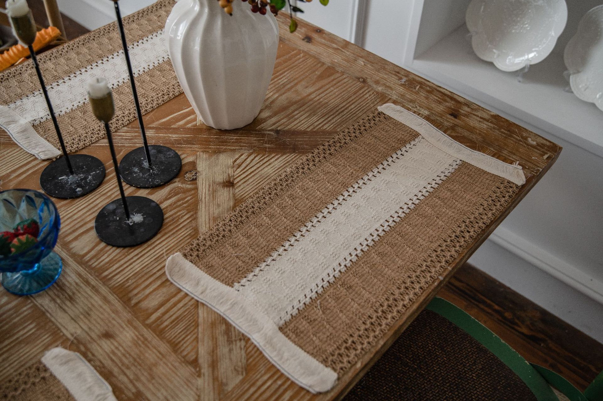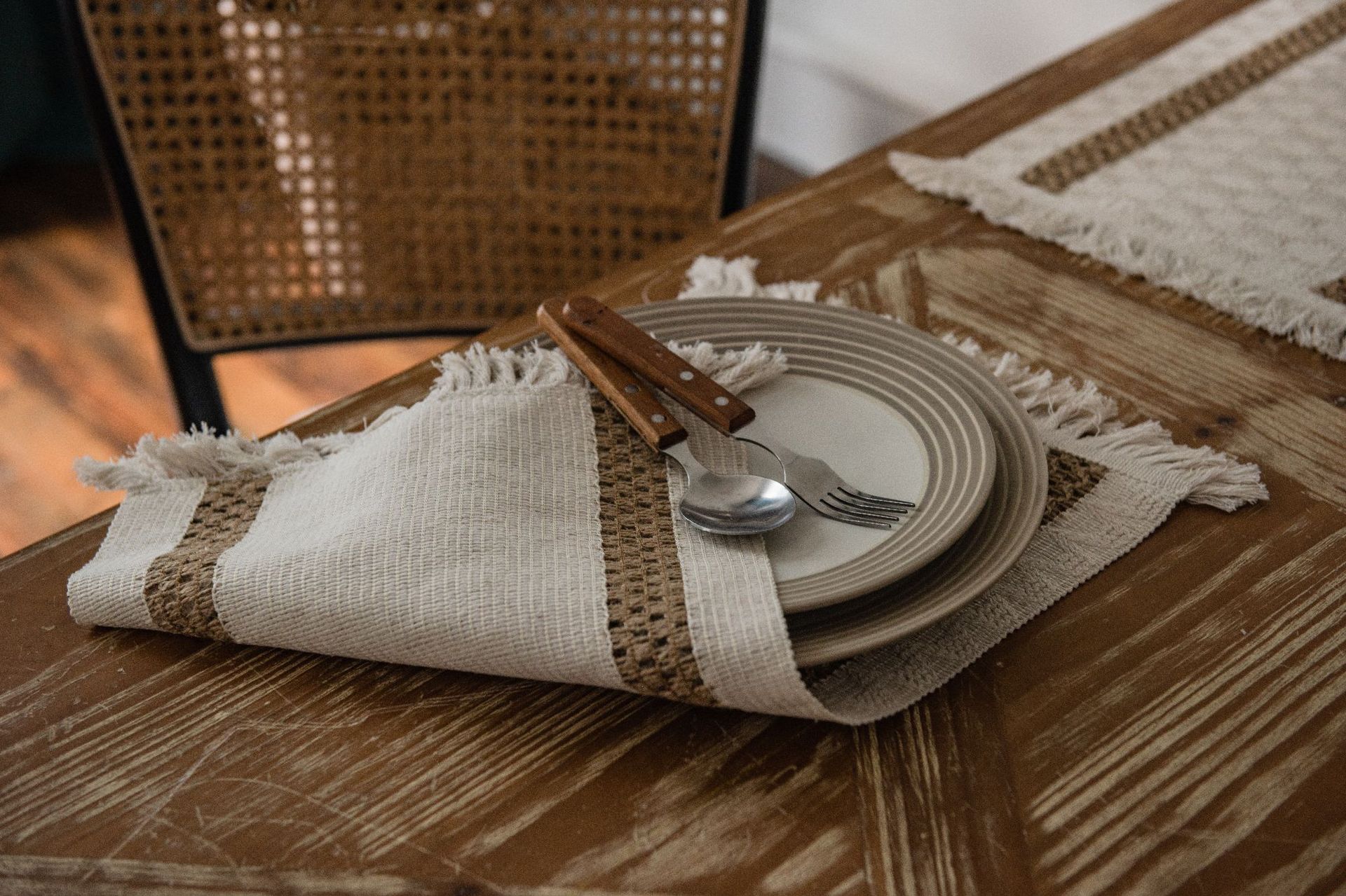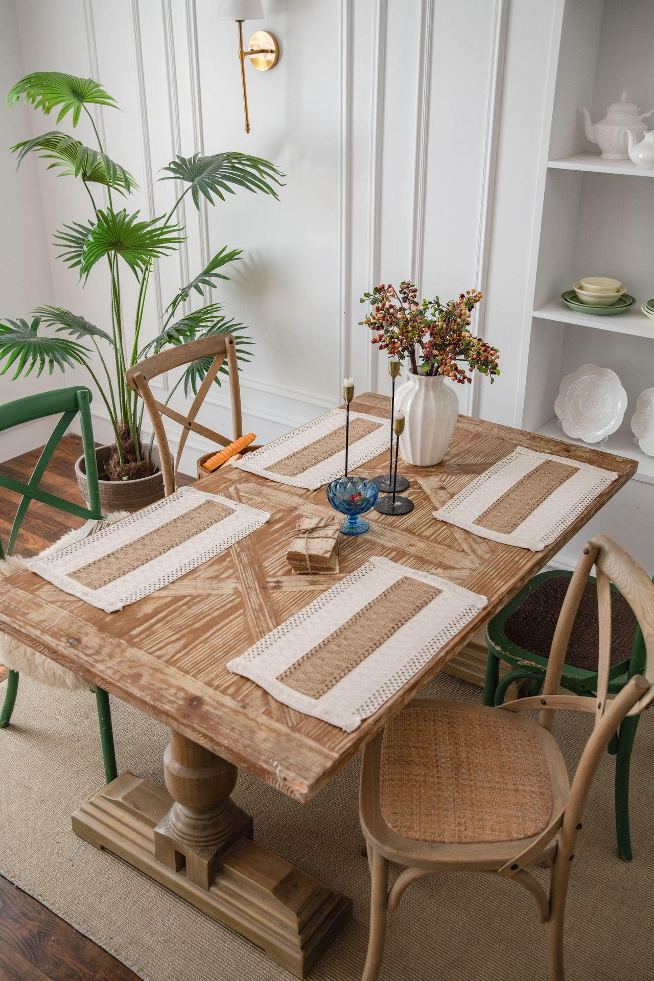 Yi qiyun cuerda de cáñamo placemat vacaciones vajilla estera tejida color a juego rayas borla tazón estera suministro directo de fábrica