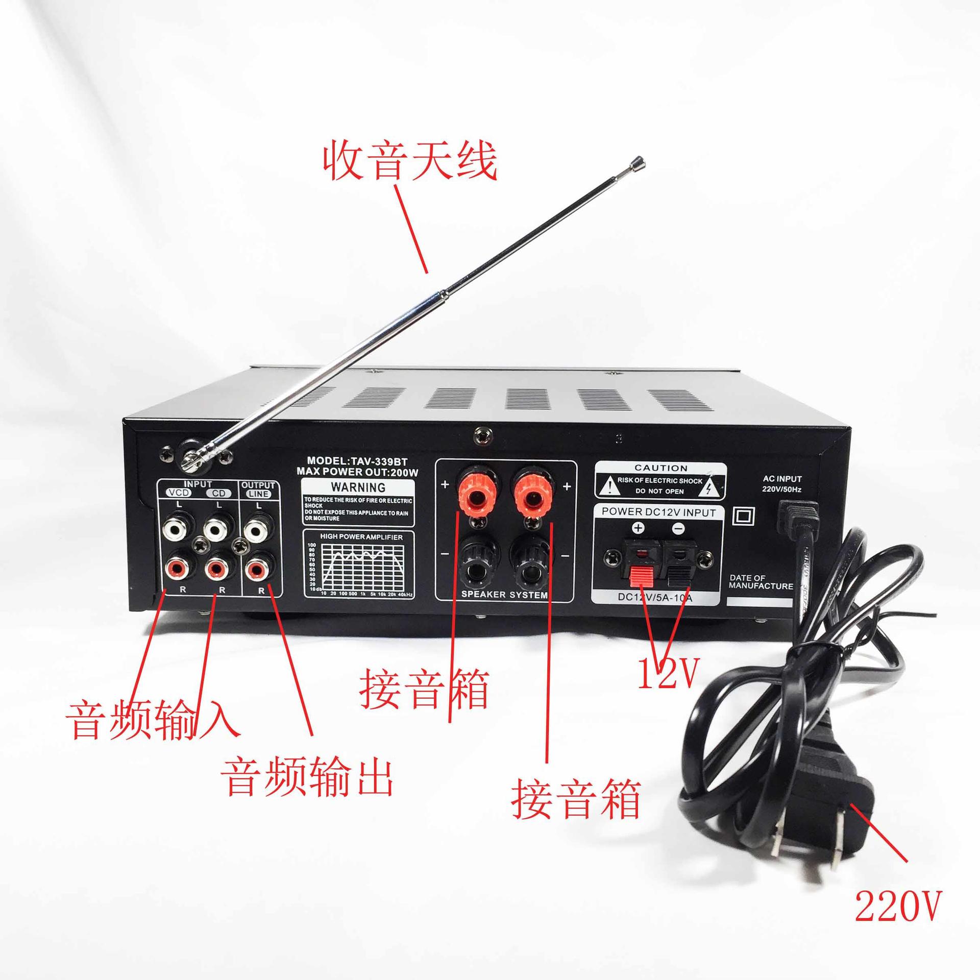 Hogar coche KTV amplificador de potencia altavoz de audio de alta potencia pequeño amplificador Bluetooth AV amplificador profesional nivel de fiebre