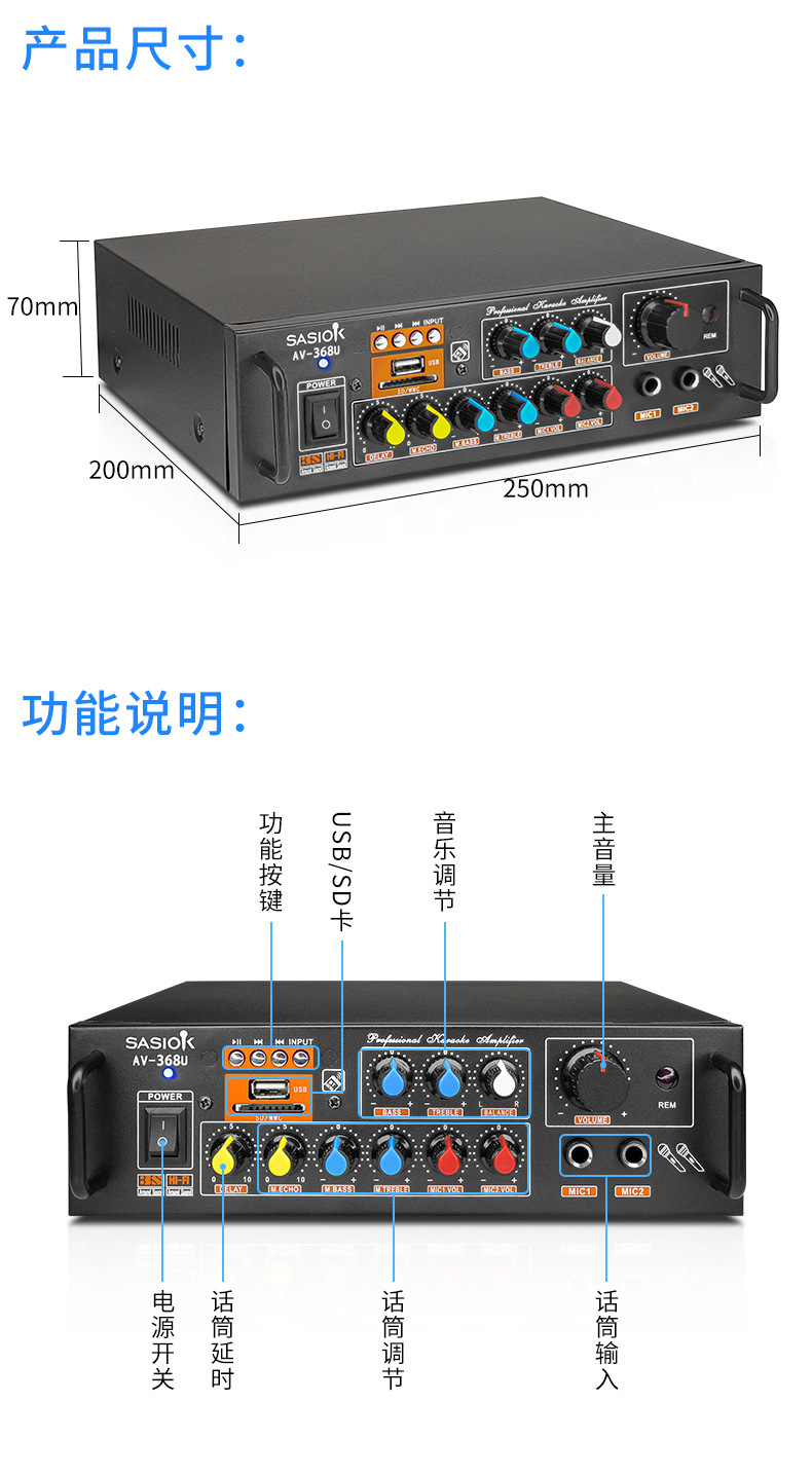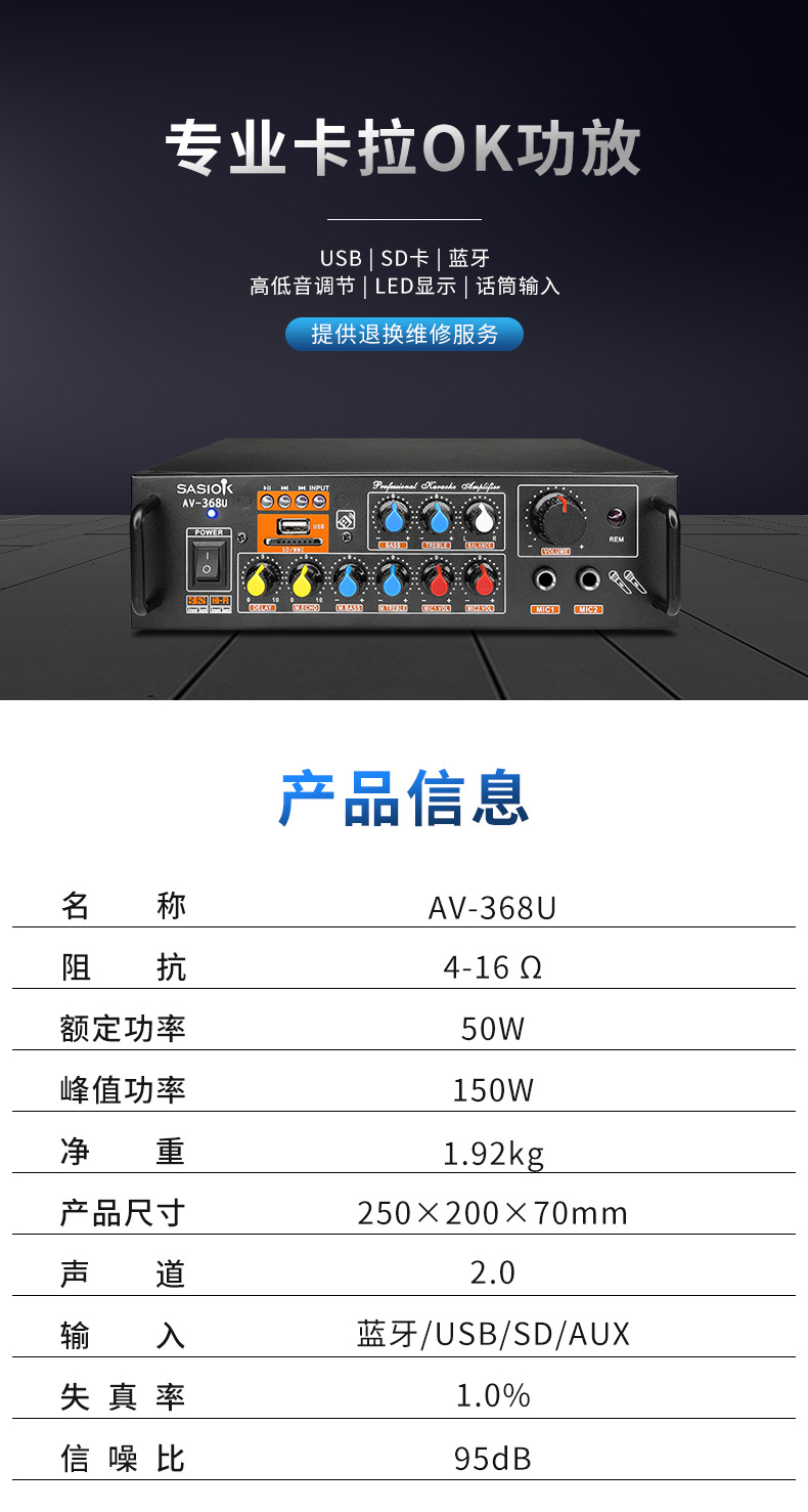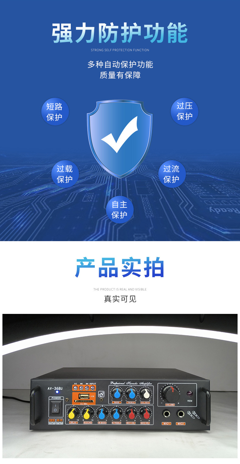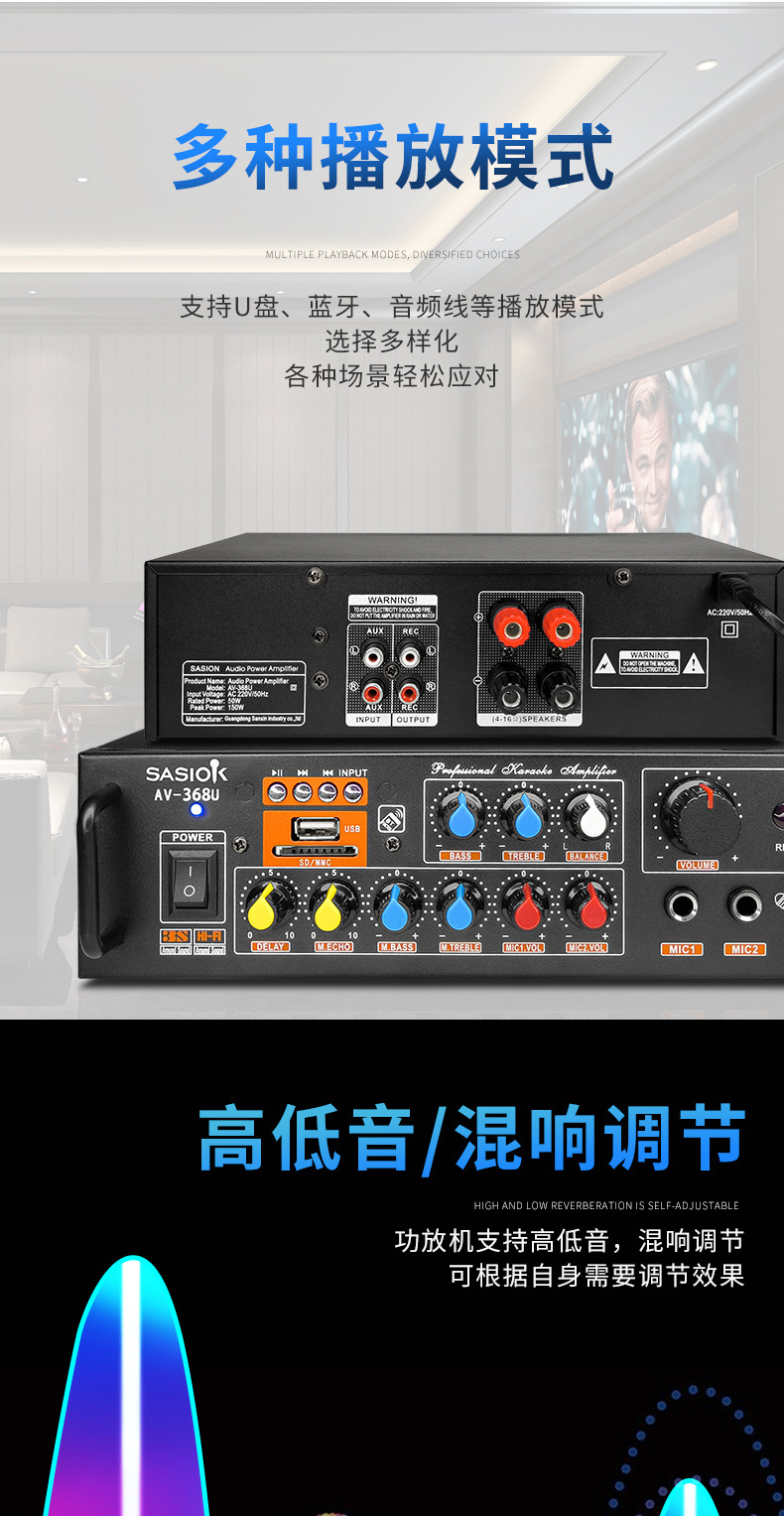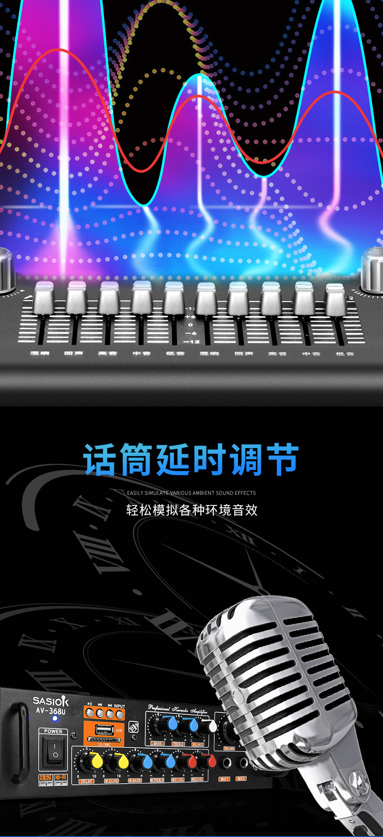 Amplificador de karaoke profesional directo de fábrica, amplificador AV de música Bluetooth para el hogar, graves pesados