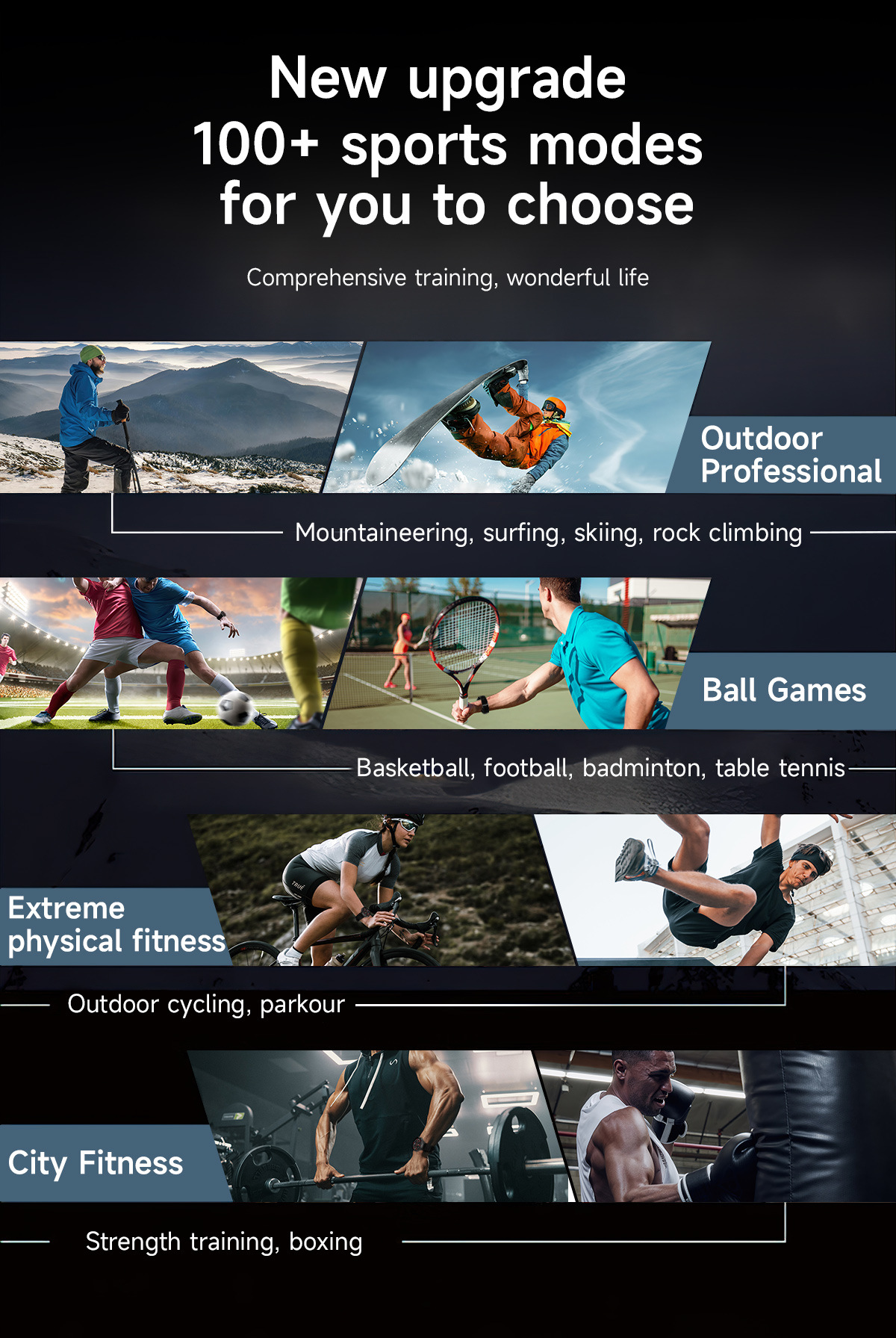 | Color | Cinta negra, cinta naranja, cinta azul, cinta negra, cinta plateada, cinta negra, cinta plateada |