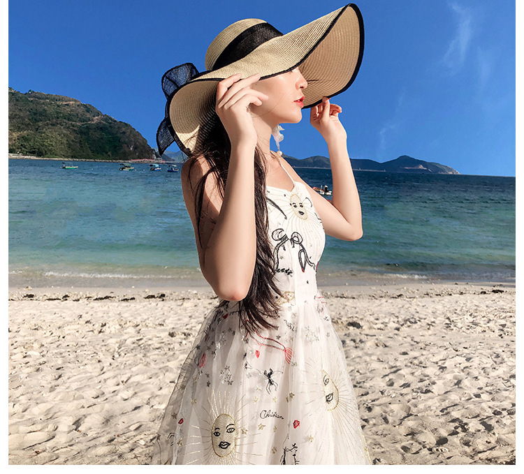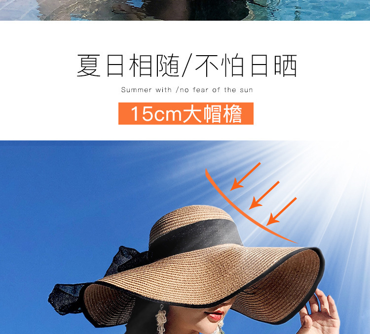 Viajar junto al mar sombrero de playa sombrero de playa mujer verano protector solar vacaciones todo fósforo gran ala paja plegable sombrero de paja
