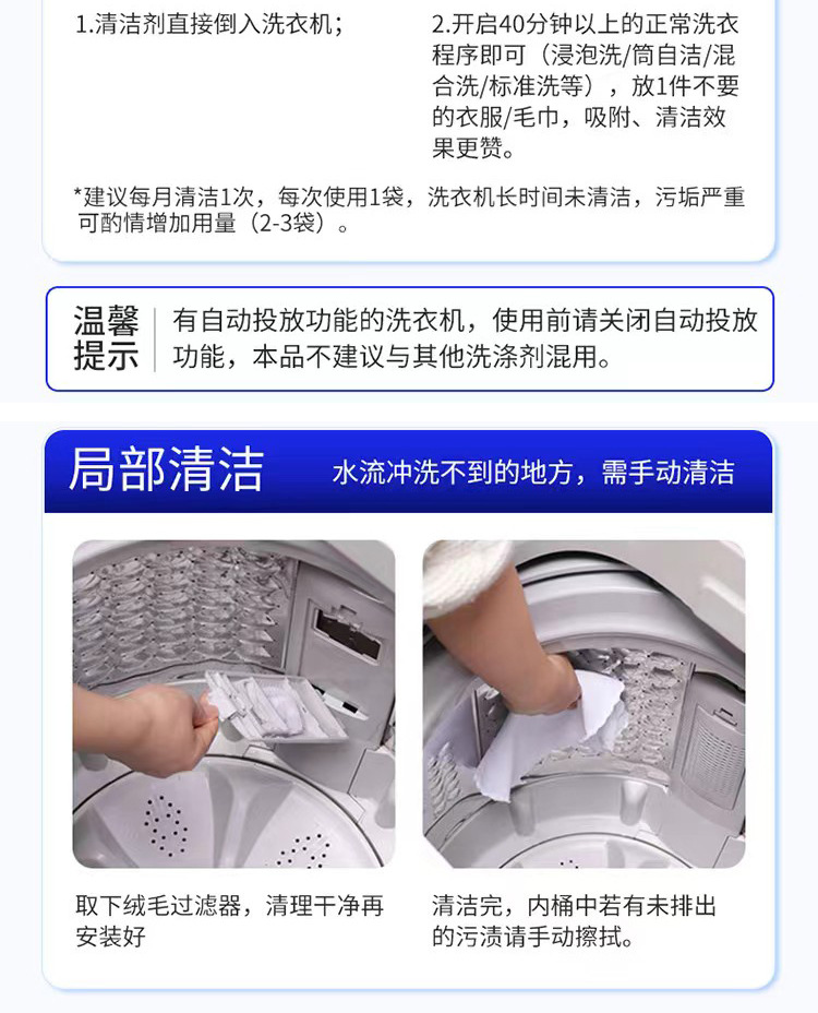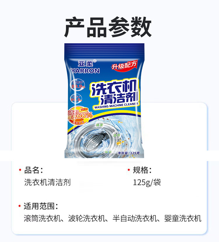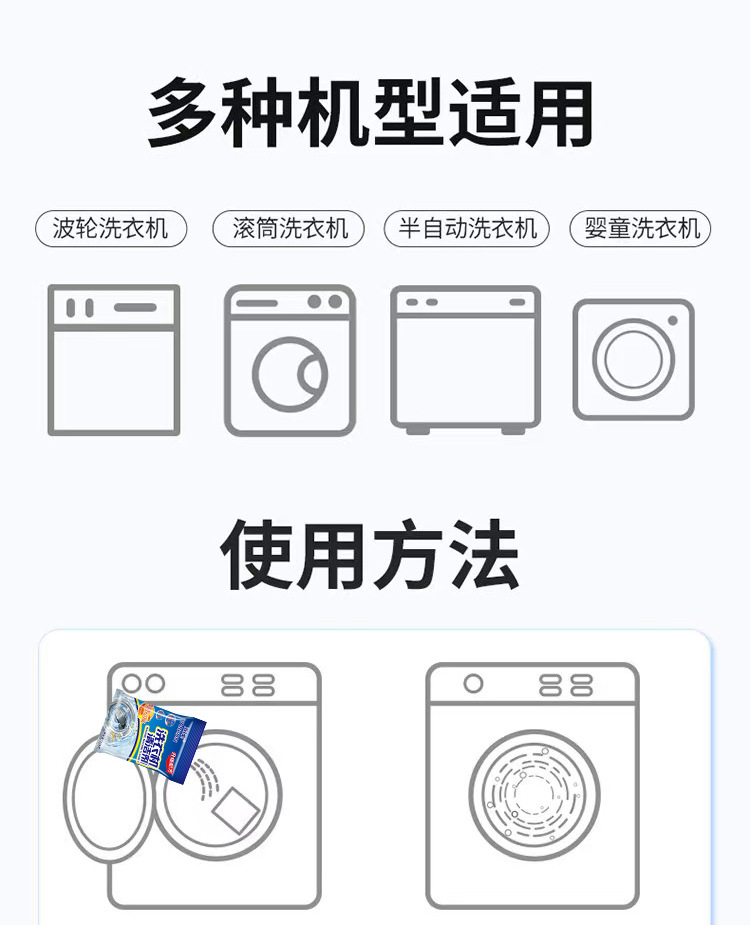 Limpiador de tanque de lavadora 125g de descalcificación fuerte, limpieza de oxígeno activo, eliminación de ácaros, mantenimiento, lavadora sin desmontaje y lavado, eliminación de manchas