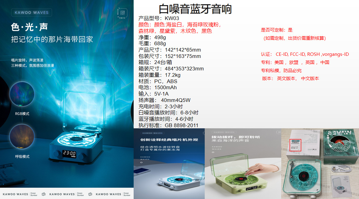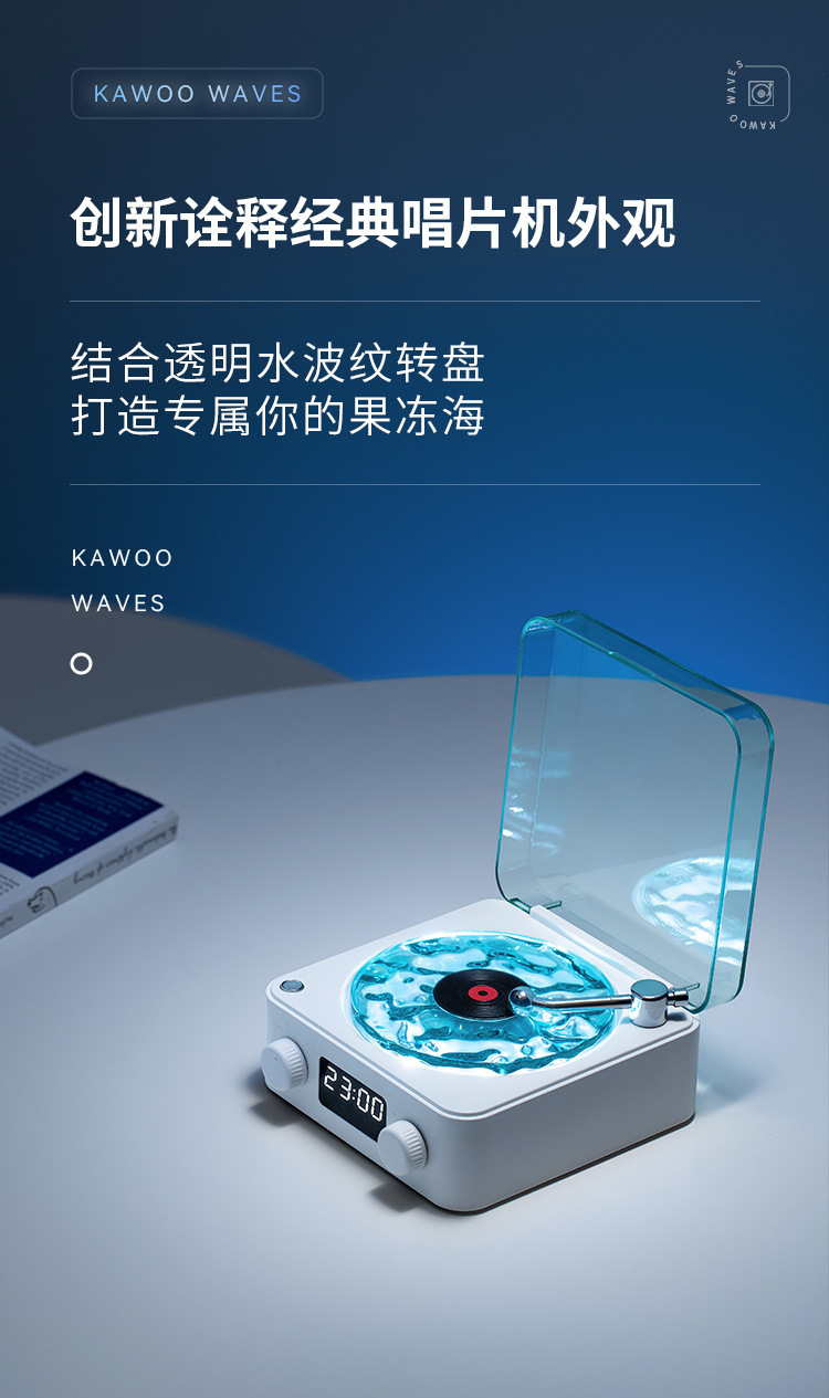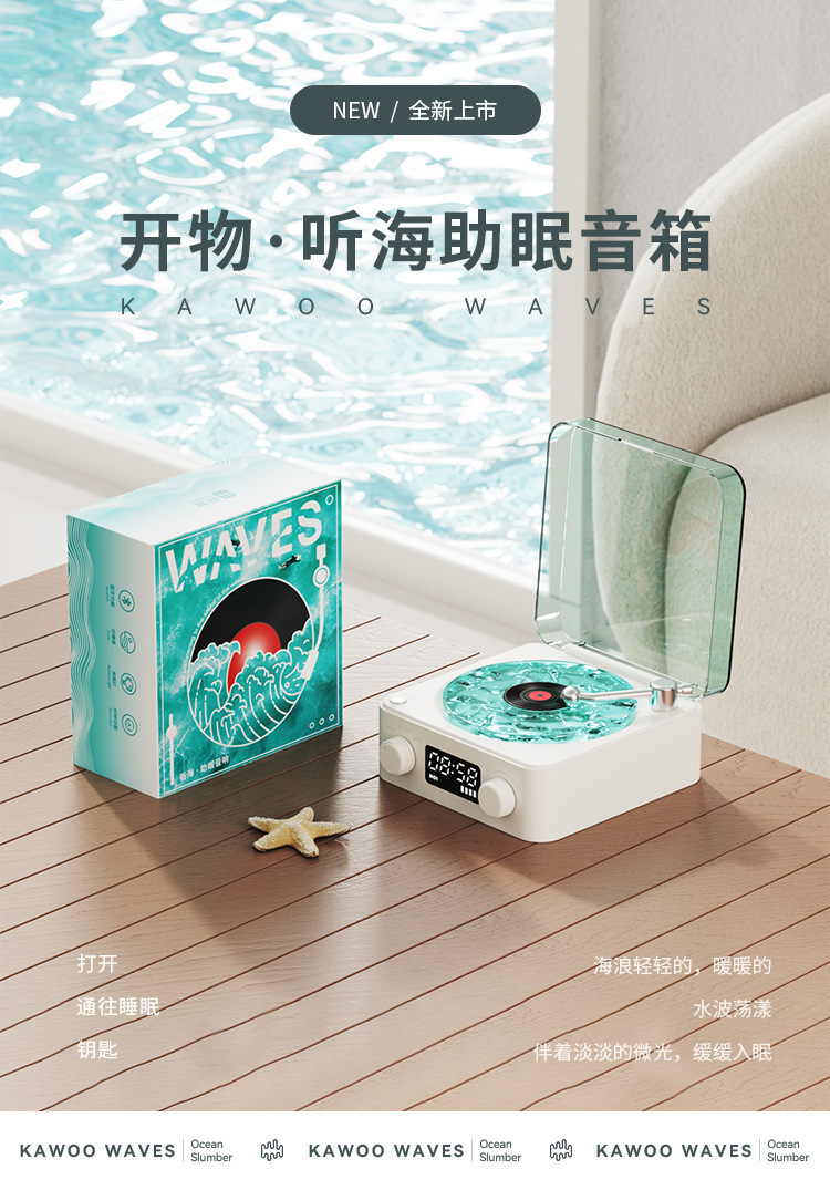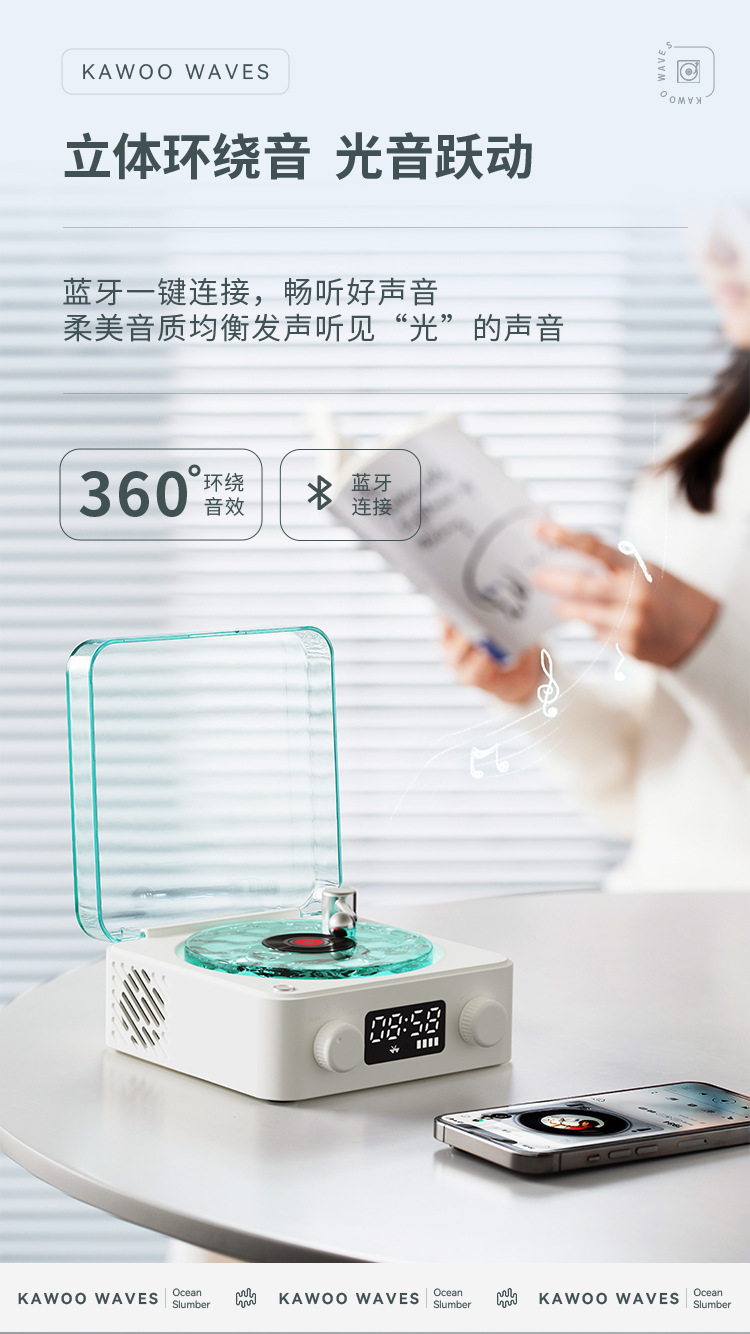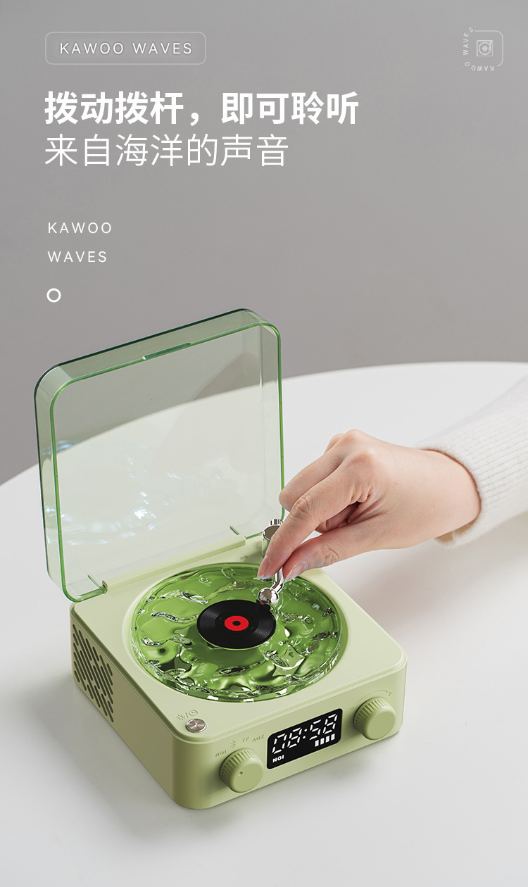 KAWOO abierto para escuchar el mar a través de la frontera, retro, ruido blanco, altavoz Bluetooth, tocadiscos de vinilo inalámbrico pequeño de alta calidad