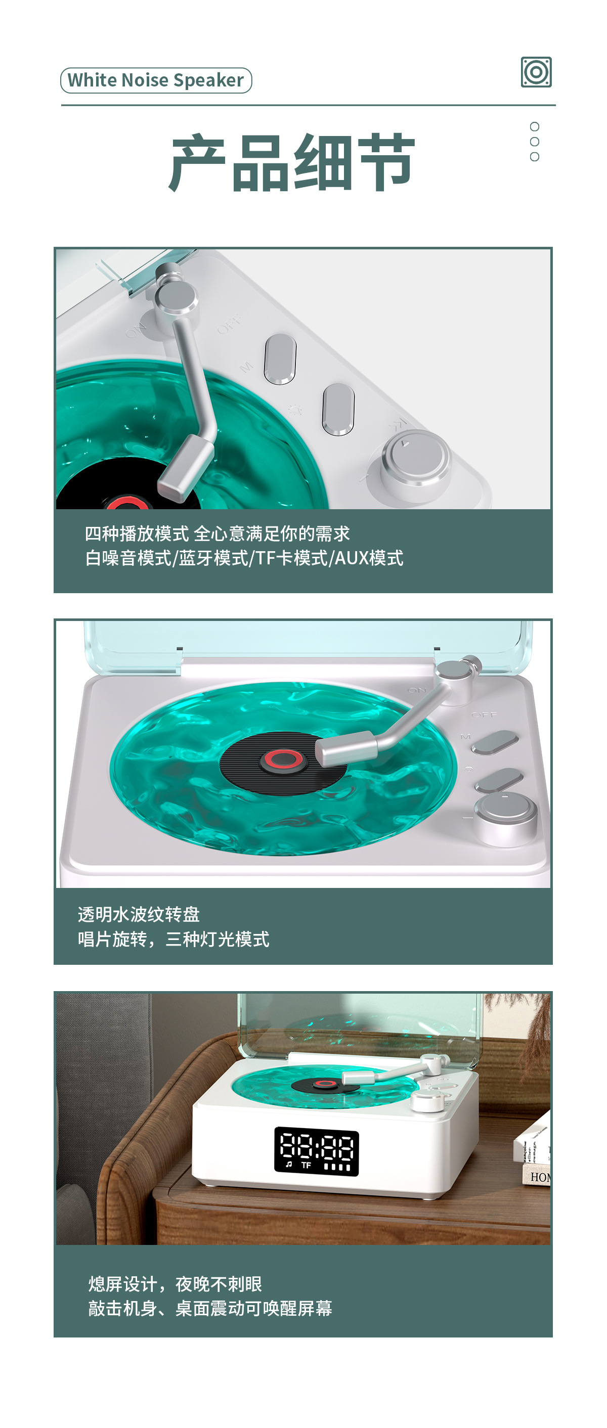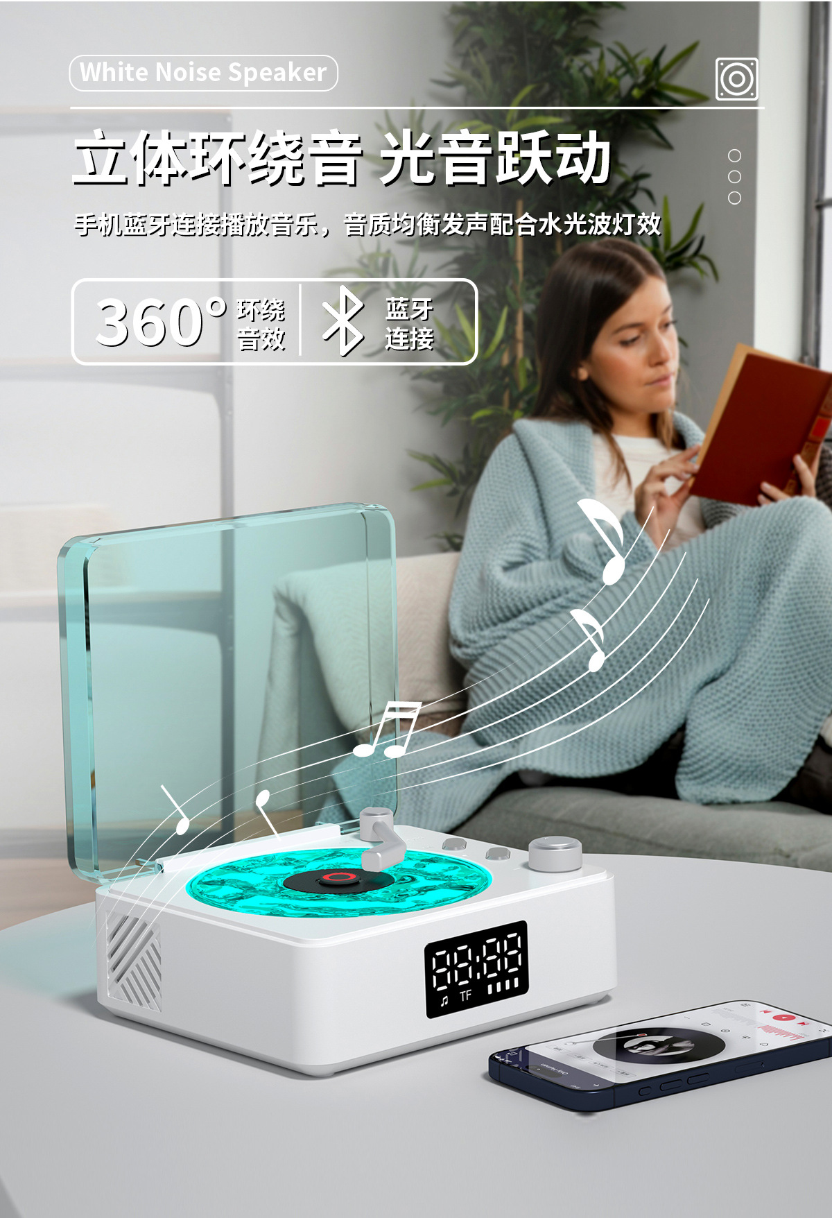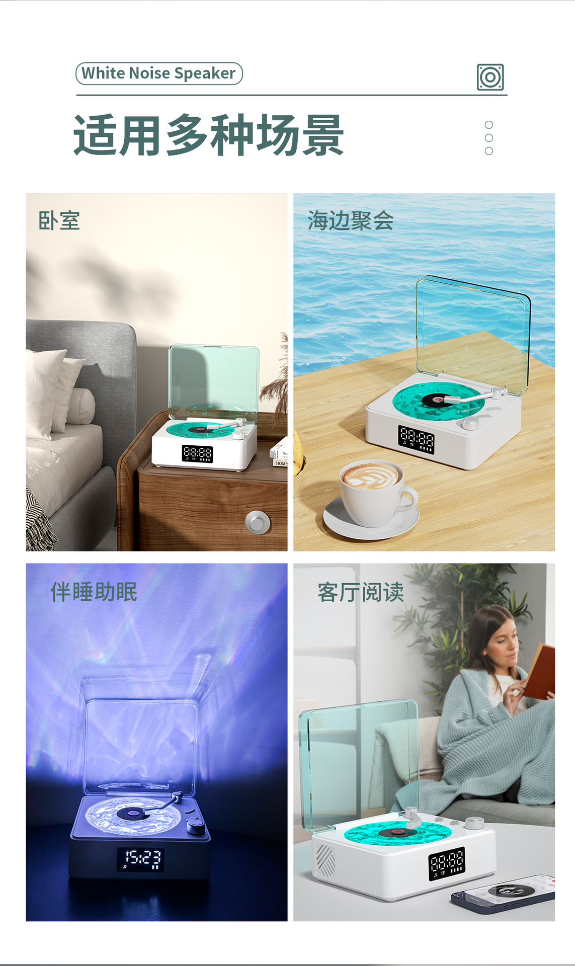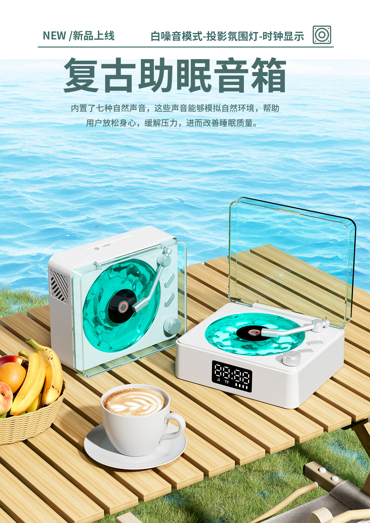Transfronterizo nuevo escuchar el mar retro pequeño ambiente de sonido ruido blanco altavoz ambiente luz regalo subwoofer Bluetooth