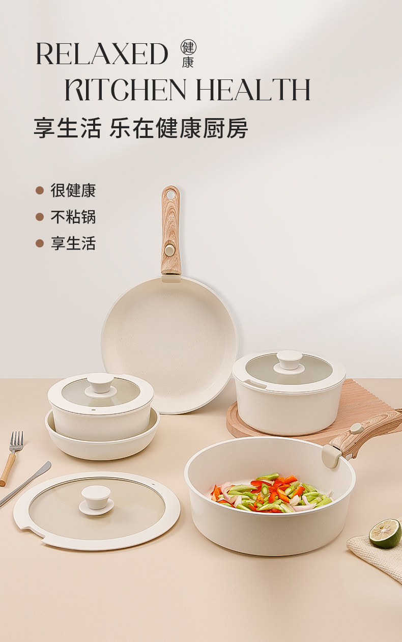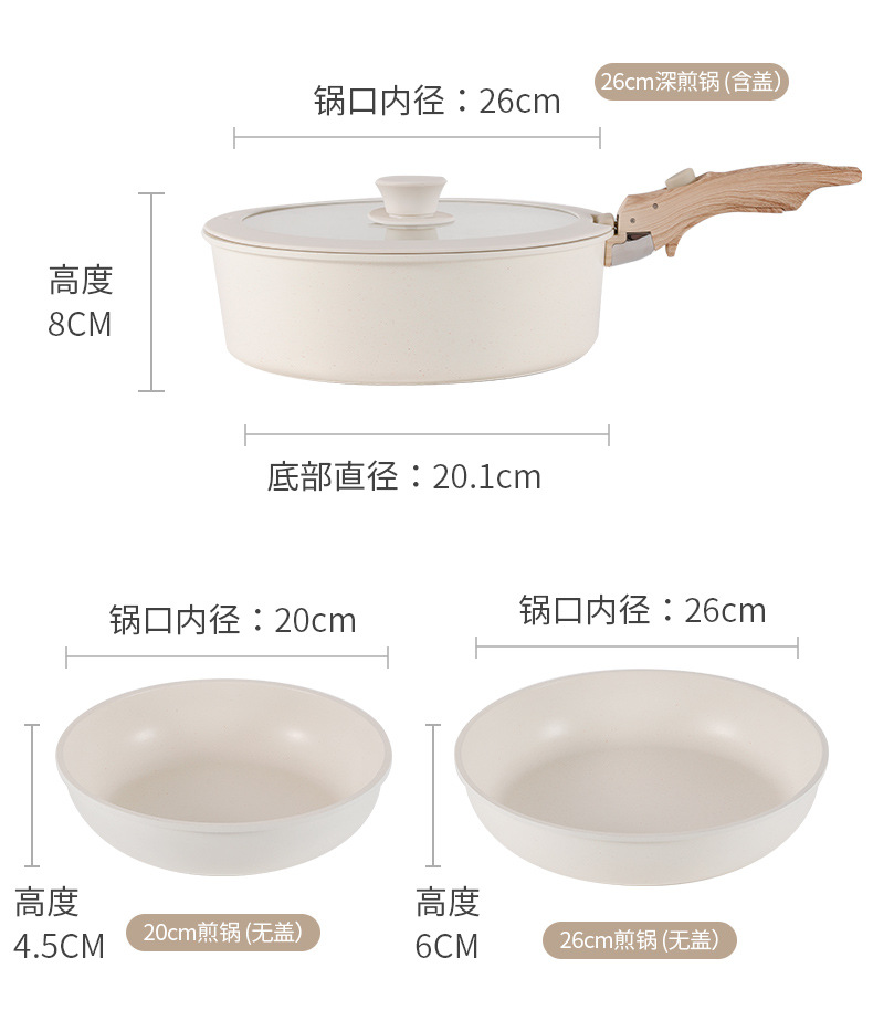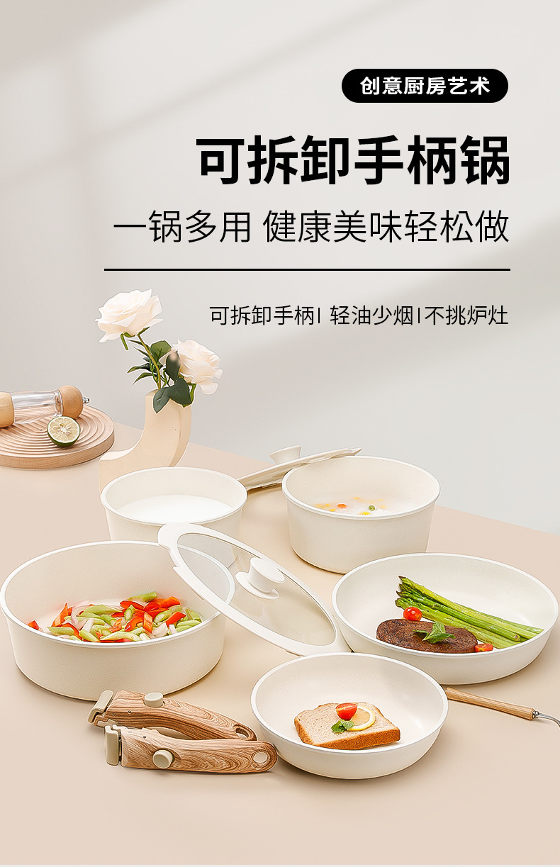 Sartén y olla antiadherente con mango desmontable, apta para cocina doméstica y camping, ideal para freír y saltear.