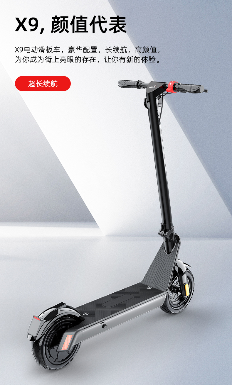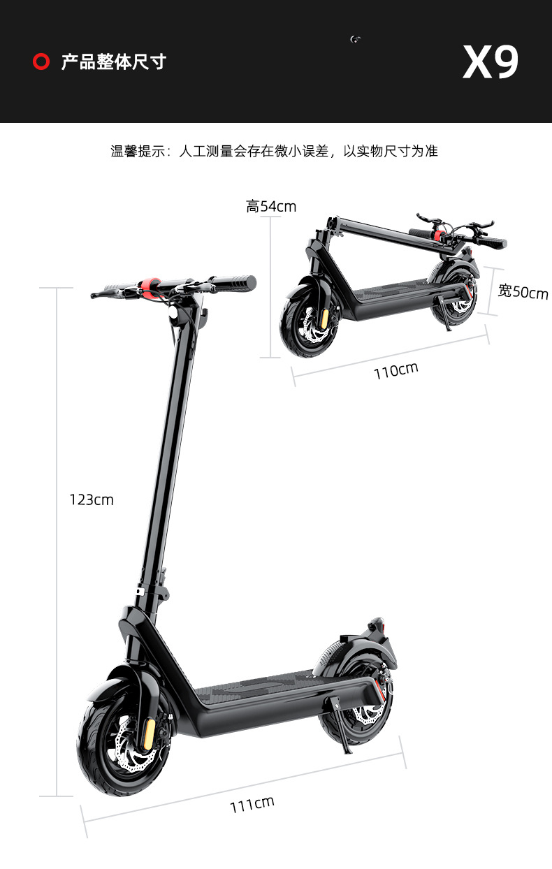 Scooter eléctrico nuevo transfronterizo X9 con una autonomía de 100KM, scooter de movilidad plegable para adultos de alta potencia, 2 ruedas de 10 pulgadas.