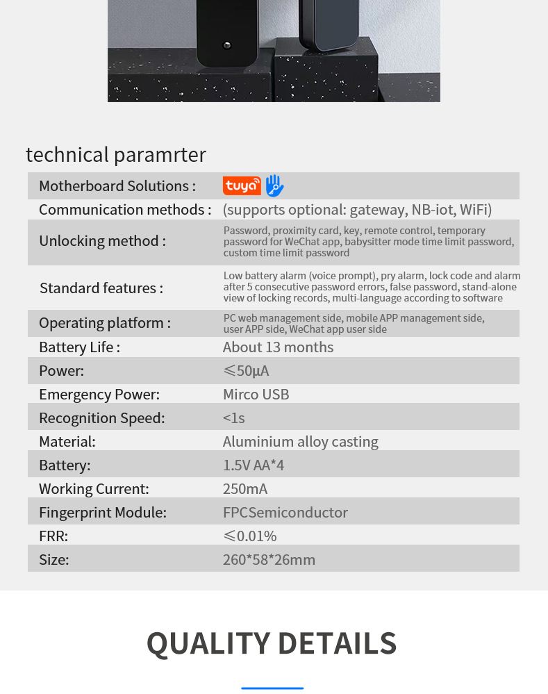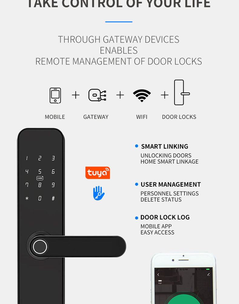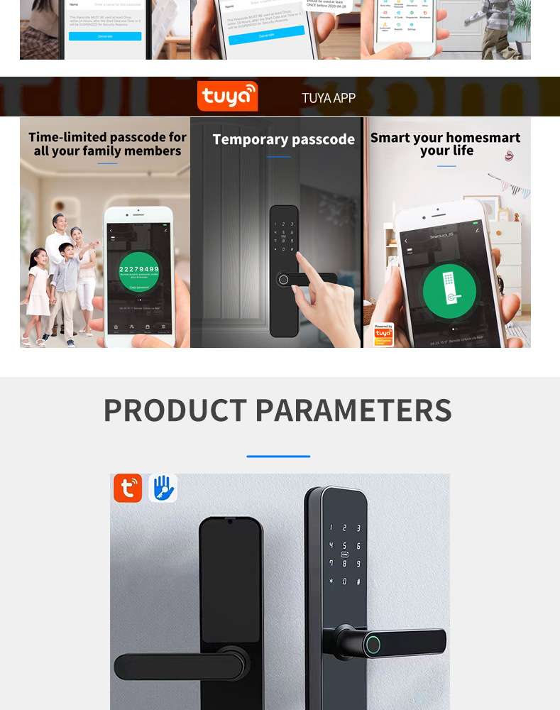 Cerradura inteligente de huella digital TTLock/Tuya con 28 idiomas
