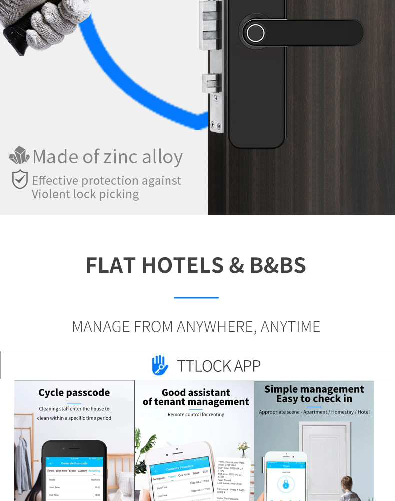 Cerradura de puerta de madera H1 versión de paso (con huella digital)