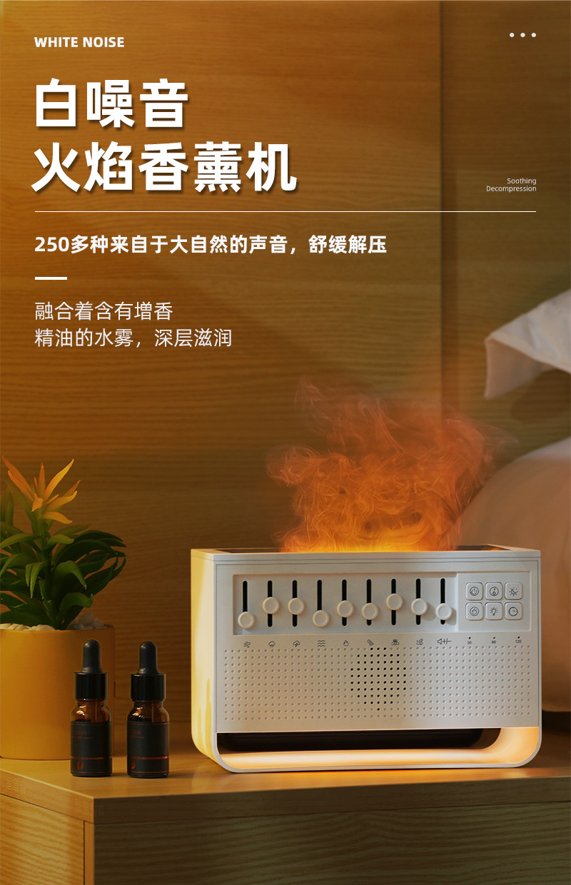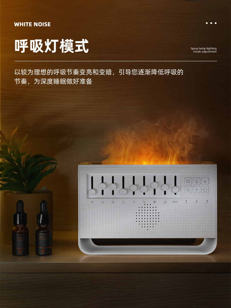 Humidificador llama + ruido blanco, aromaterapia, escritorio hogar, difusor de fragancia al por mayor