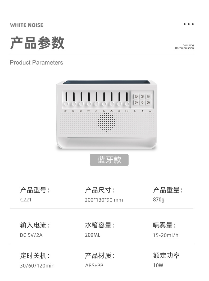 | Colores | C221 pista de audio deslizante ruido blanco Bluetooth (versión china para uso doméstico),C221 pista de audio deslizante ruido blanco Bluetooth (versión en inglés para exportación),Versión de botón FS301 ruido blanco efecto de lámpara RGB Bluetooth (versión en chino e inglés) |