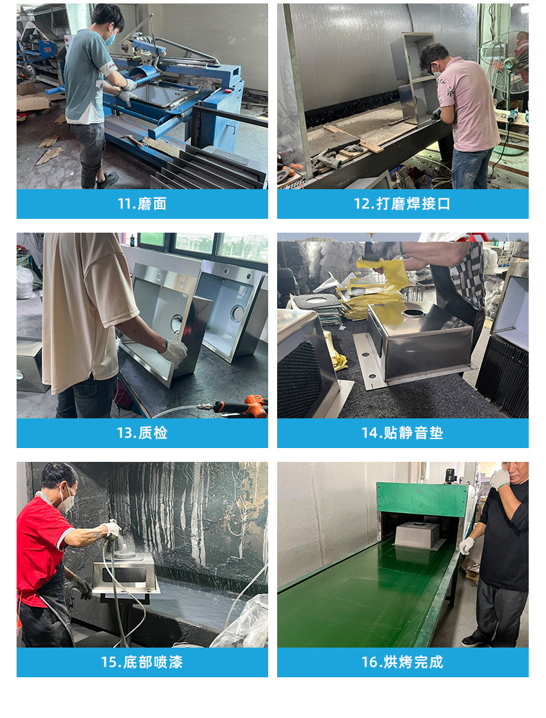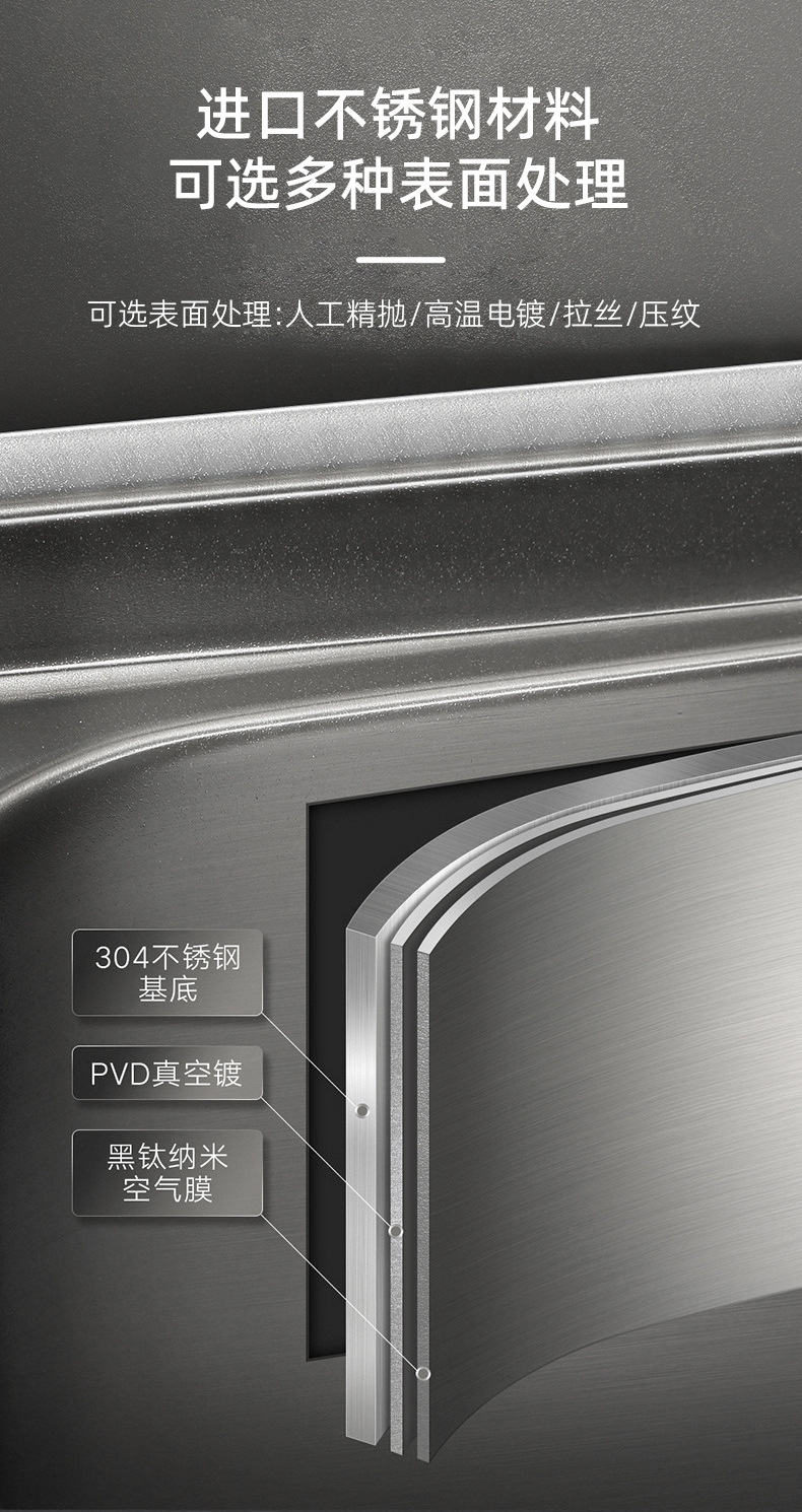 Fregadero de cocina comercial personalizado con porta cuchillos y doble ranura, acero inoxidable cepillado