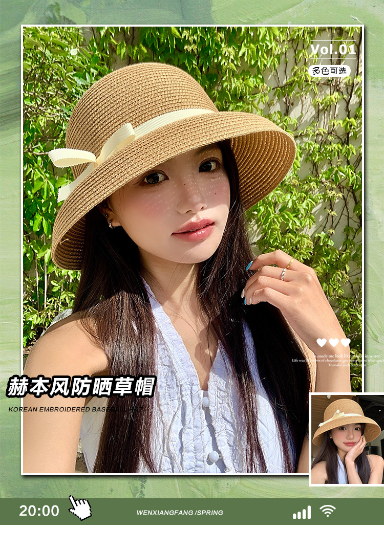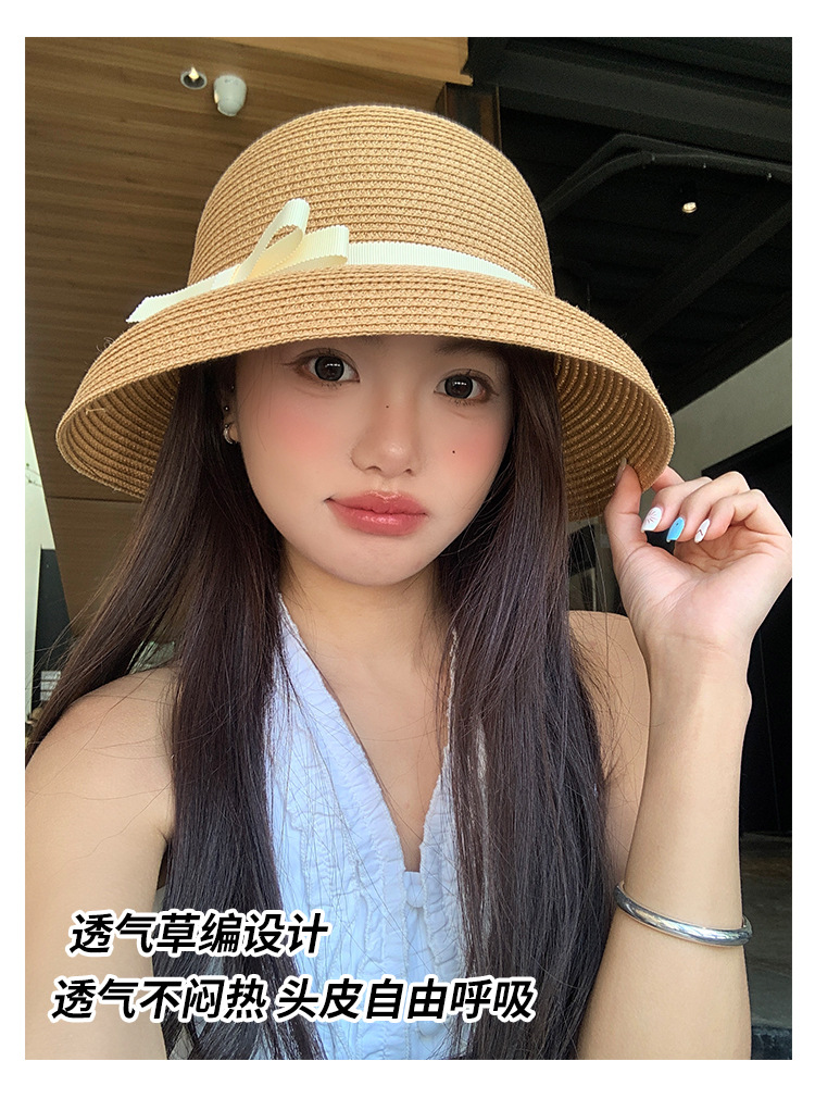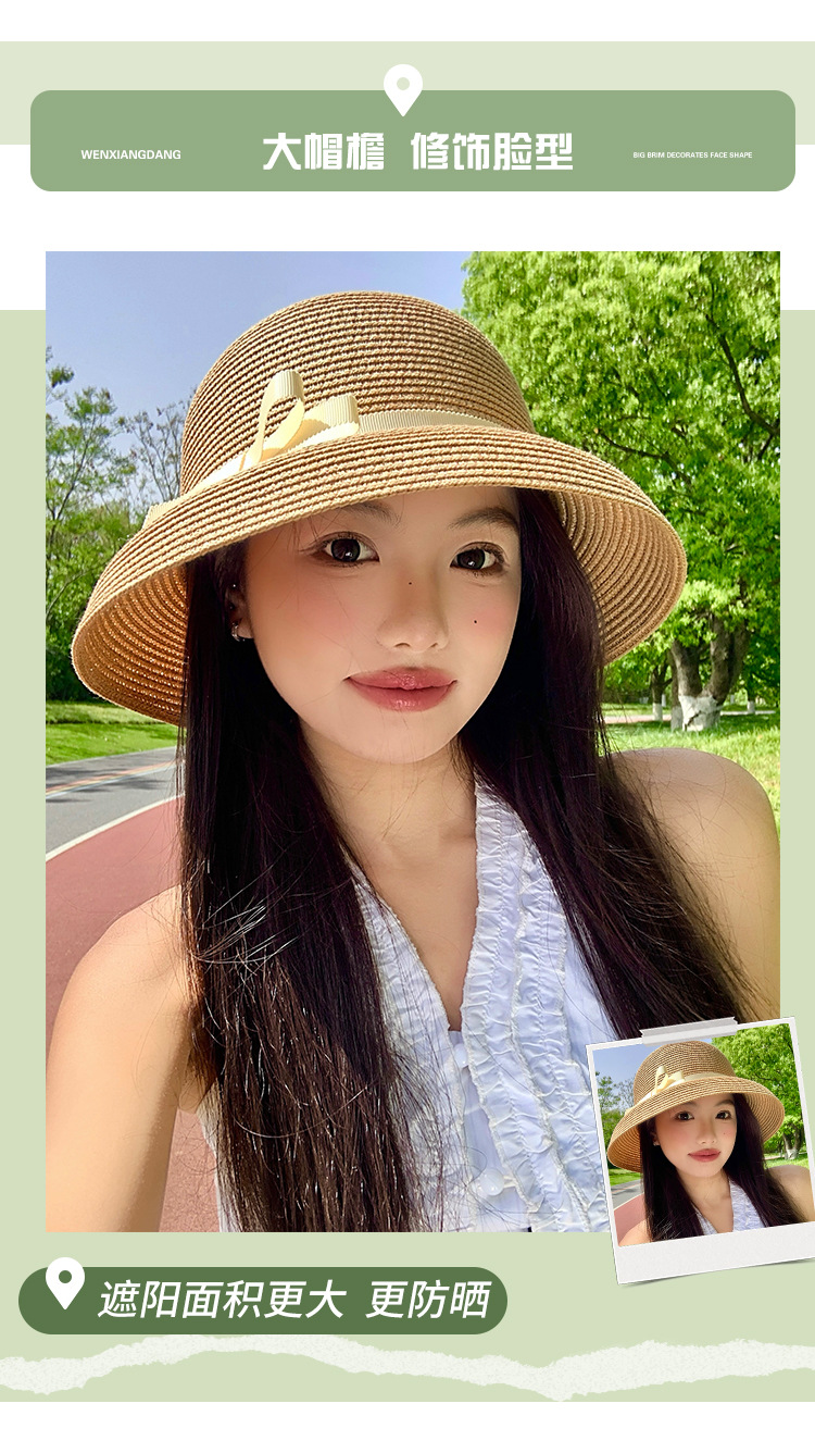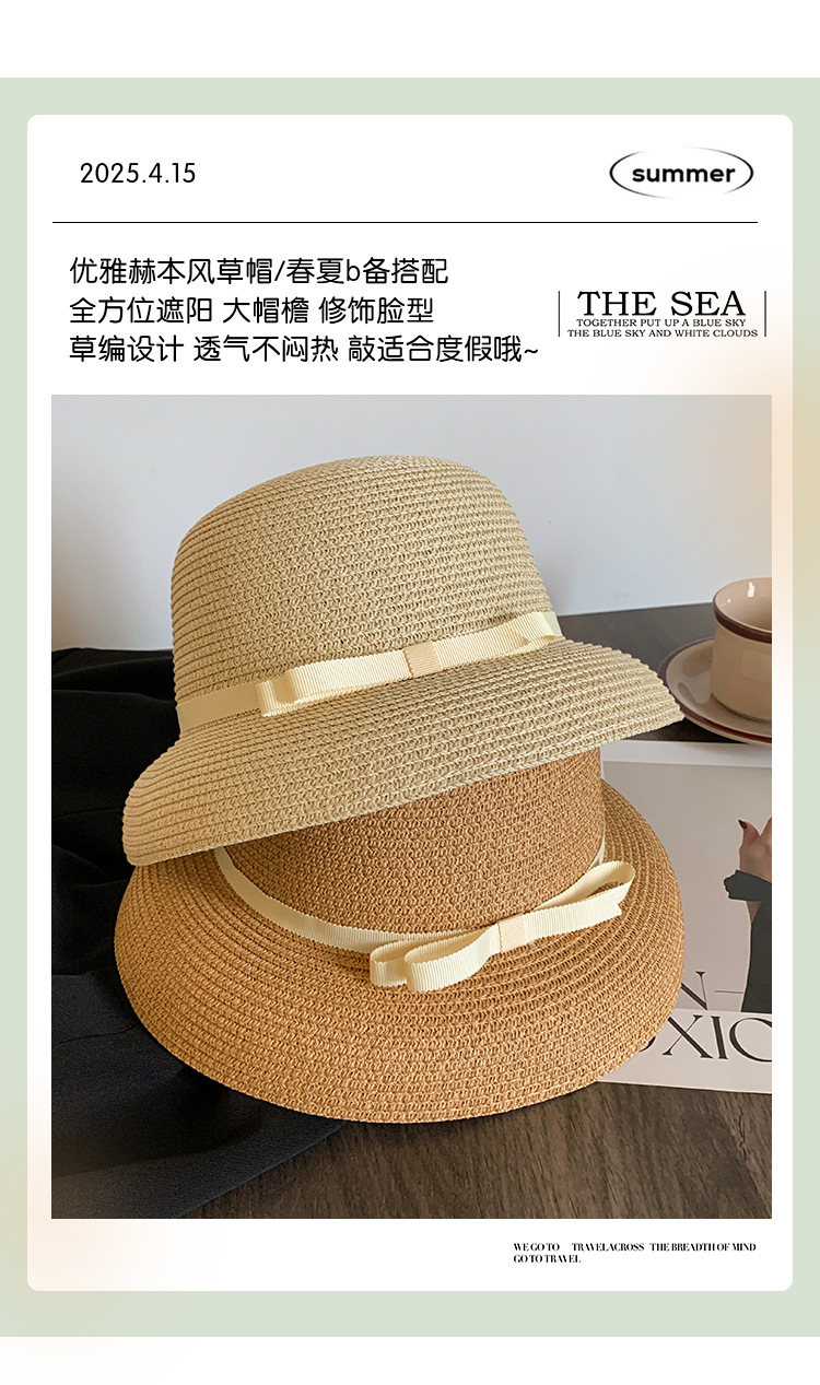 Sombrero de paja estilo Hepburn con lazo, verano 2025, sombrero protector solar para mujer