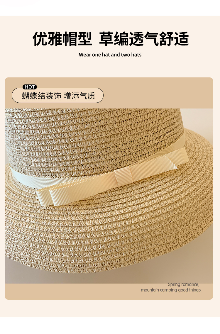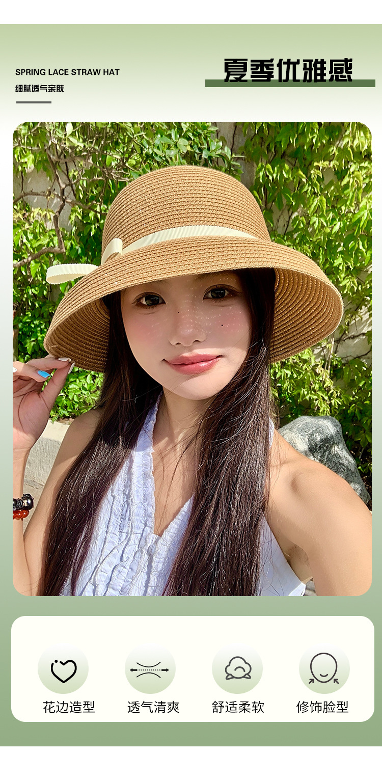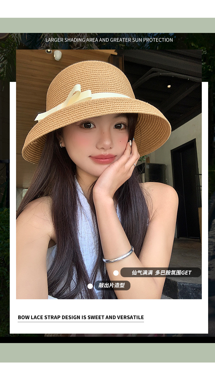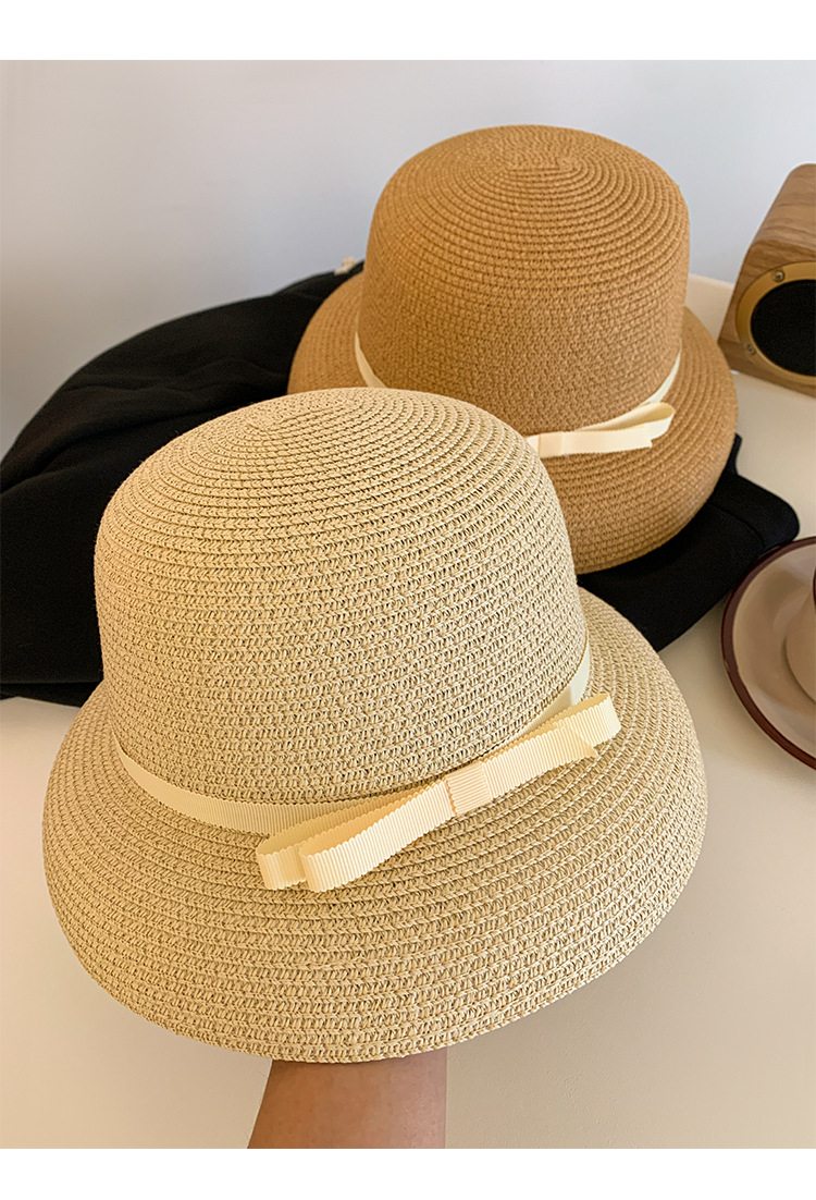Sombrero de paja estilo Hepburn con lazo, verano 2025, sombrero protector solar para mujer