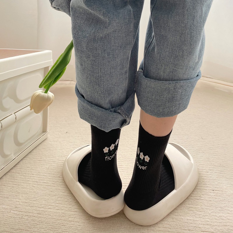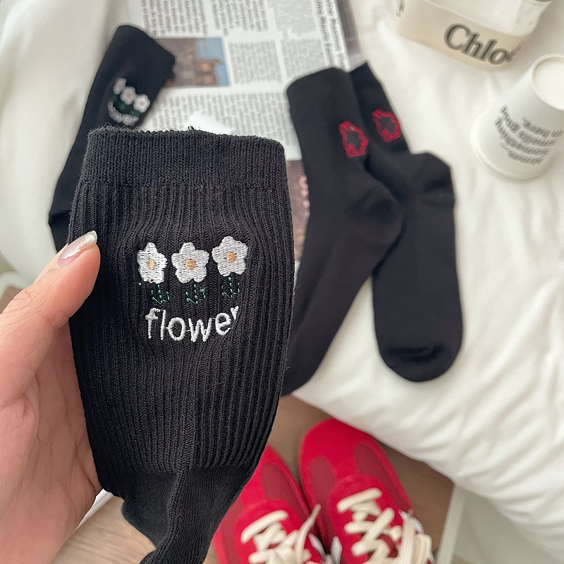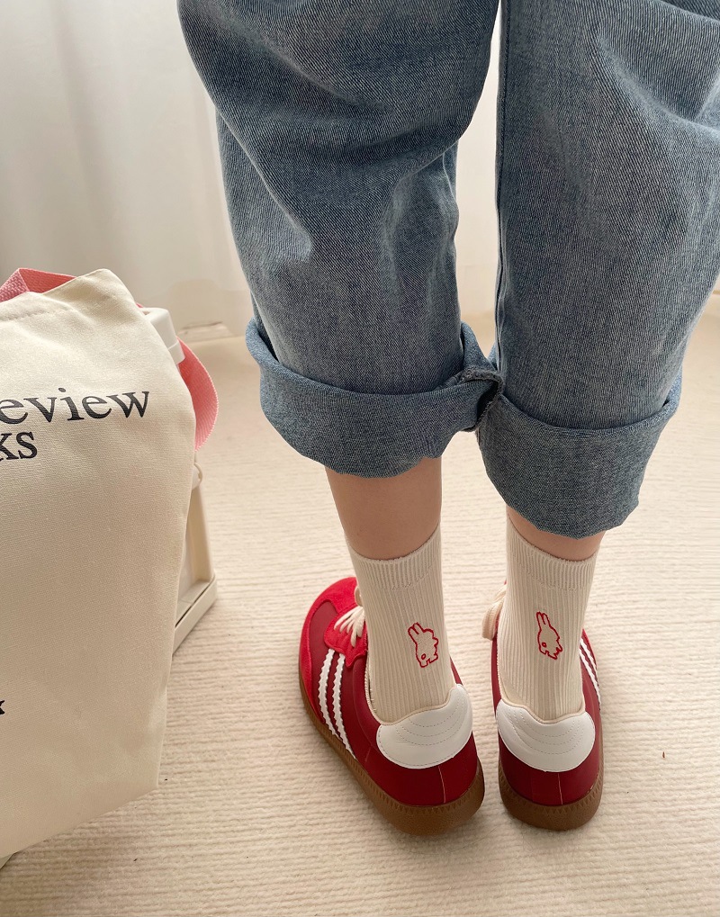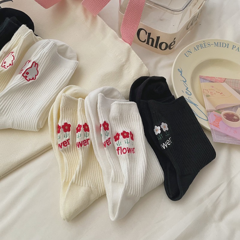 Calcetines de mujer estilo coreano-japonés con bordado de conejo, suaves, delgados y a la moda.