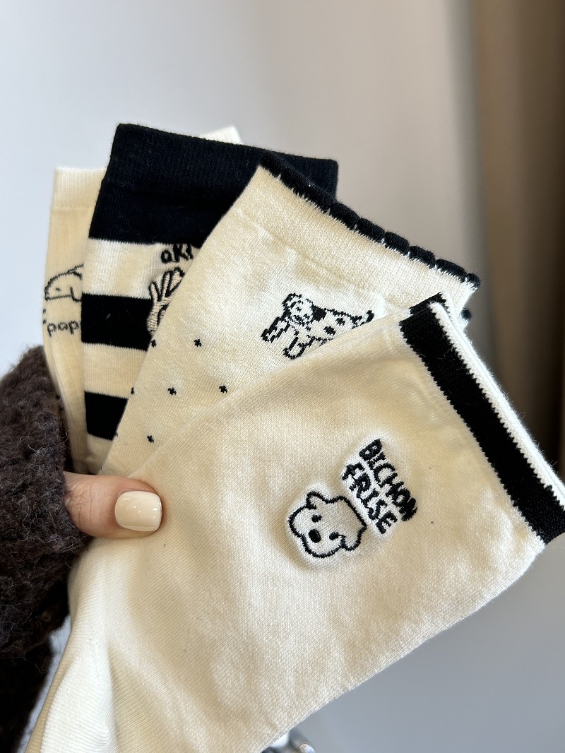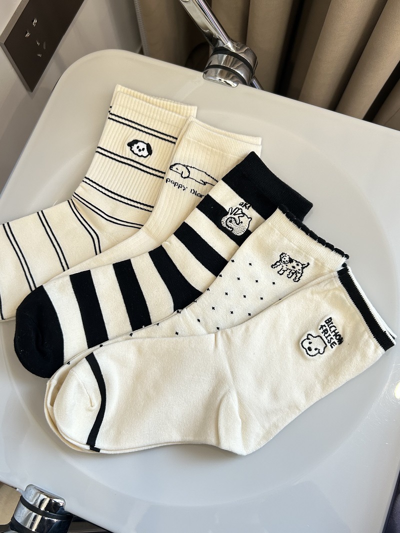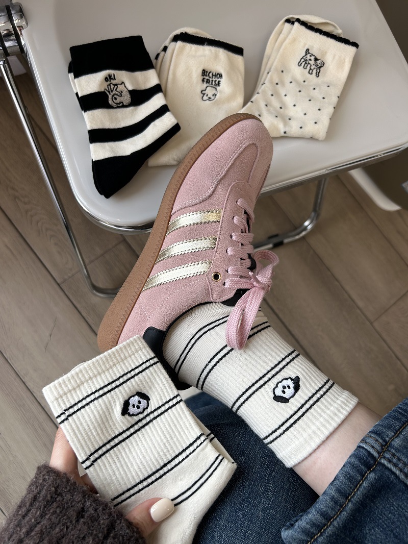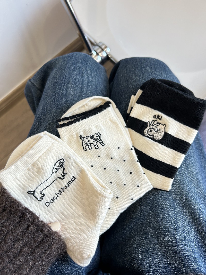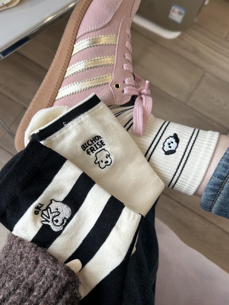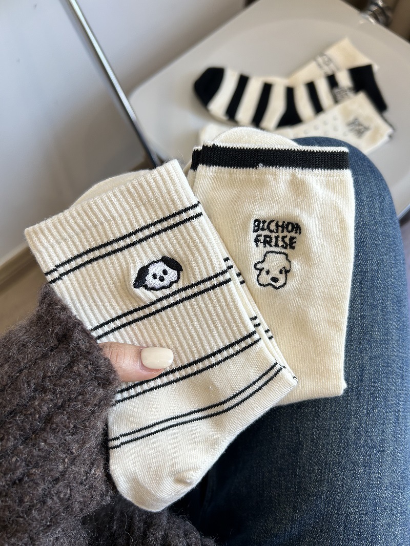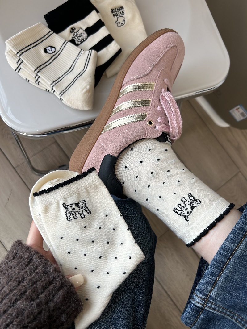 Calcetines de perrito para mujer, estilo japonés con rayas y lunares, lindos y cómodos para uso diario.