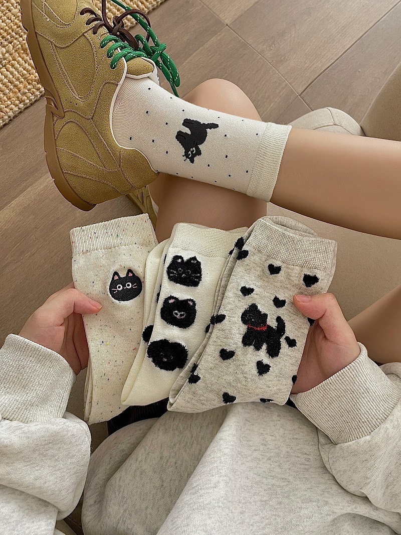 Calcetines de gato para mujer, diseño con hilo fino, amor en relieve, suaves y sin costuras.