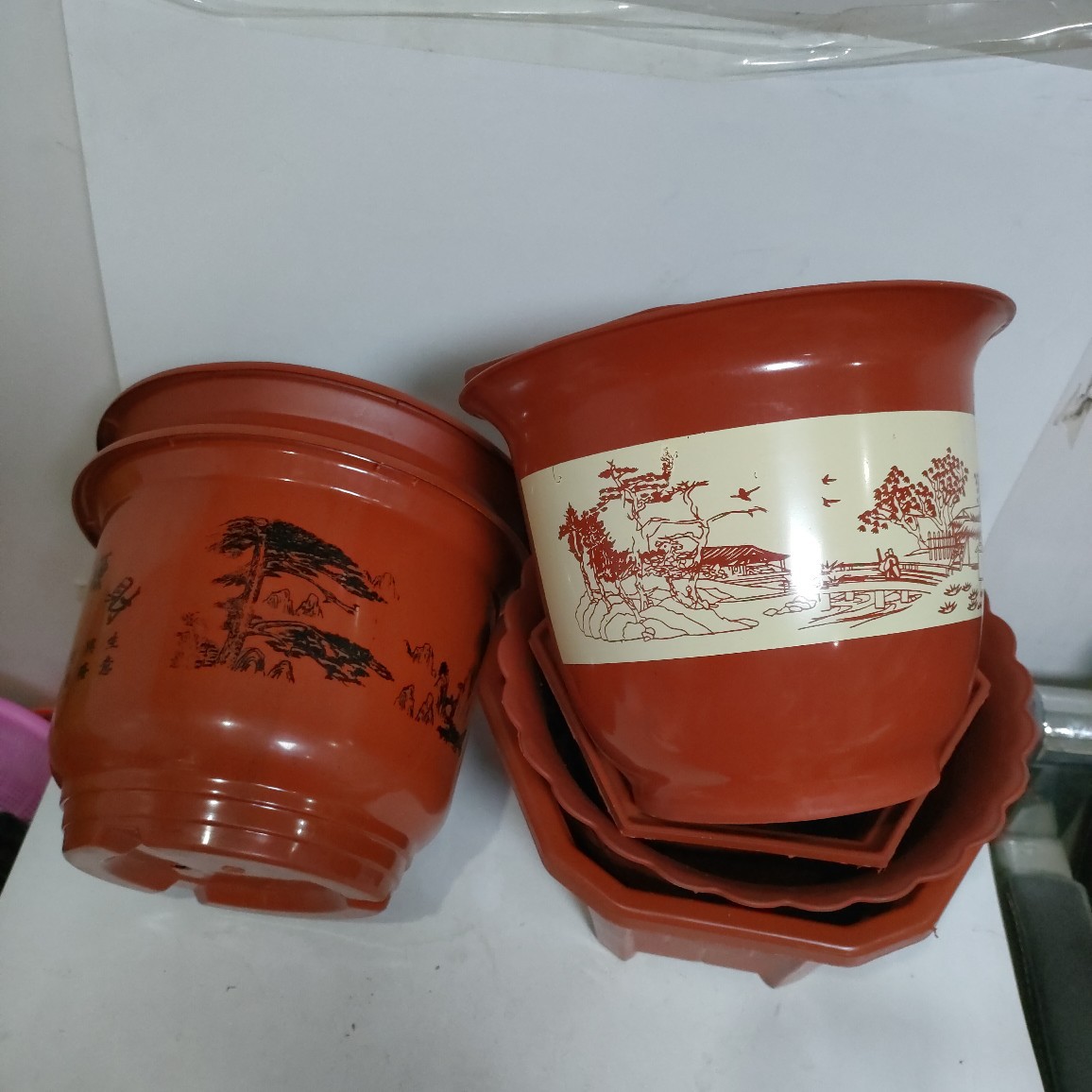 Maceta de plástico vintage con diseño hexagonal y octogonal, estilo rústico, ideal para plantas y suculentas.