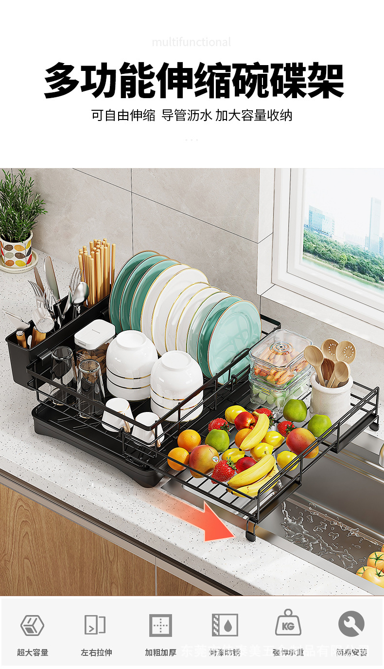 Cocina escurrir plato rack hogar vajilla taza de almacenamiento rack Mesa multifunción retráctil vajilla rack de almacenamiento