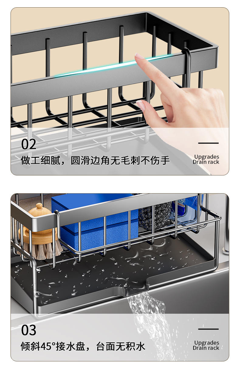 Organizador fregadero cocina, estante drenaje, porta esponjas y detergente, multifuncional