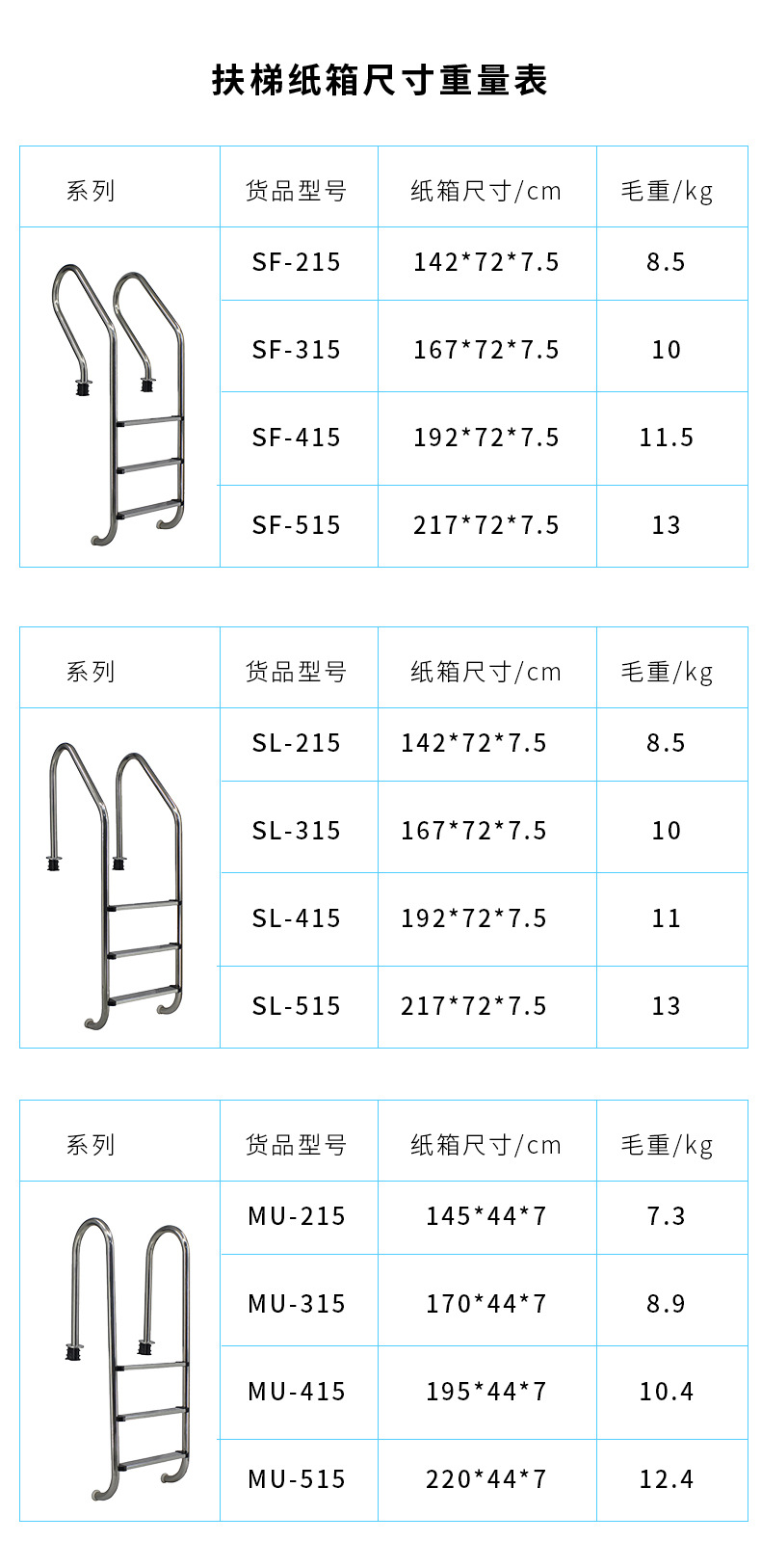 Escalera de Acero Inoxidable 304 para Piscina, Unilateral, Antideslizante, Sirena