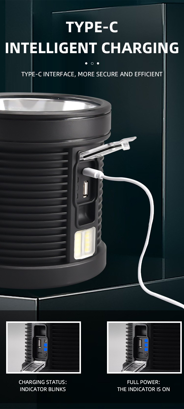 Linterna de Trabajo Solar Recargable, Proyector, Reflector, Potente, Exterior