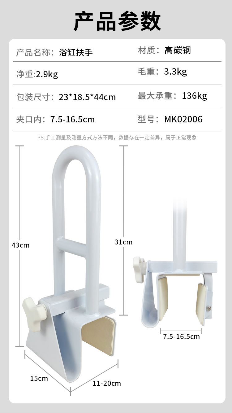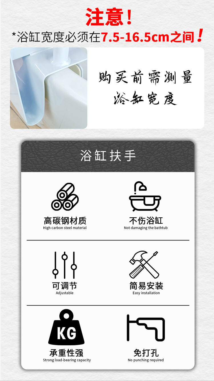 Barandilla antideslizante para el baño, soporte de seguridad para personas mayores/embarazadas, dispositivo de prevención de caídas en el baño