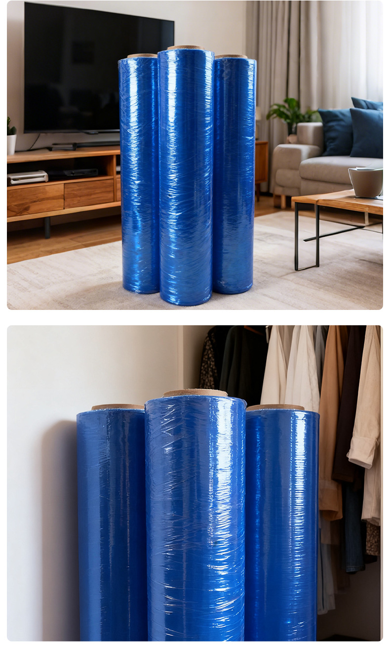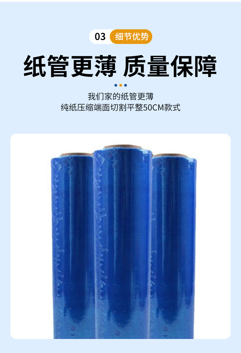 Film estirable PE azul, embalaje industrial de 50 cm, film protector elástico