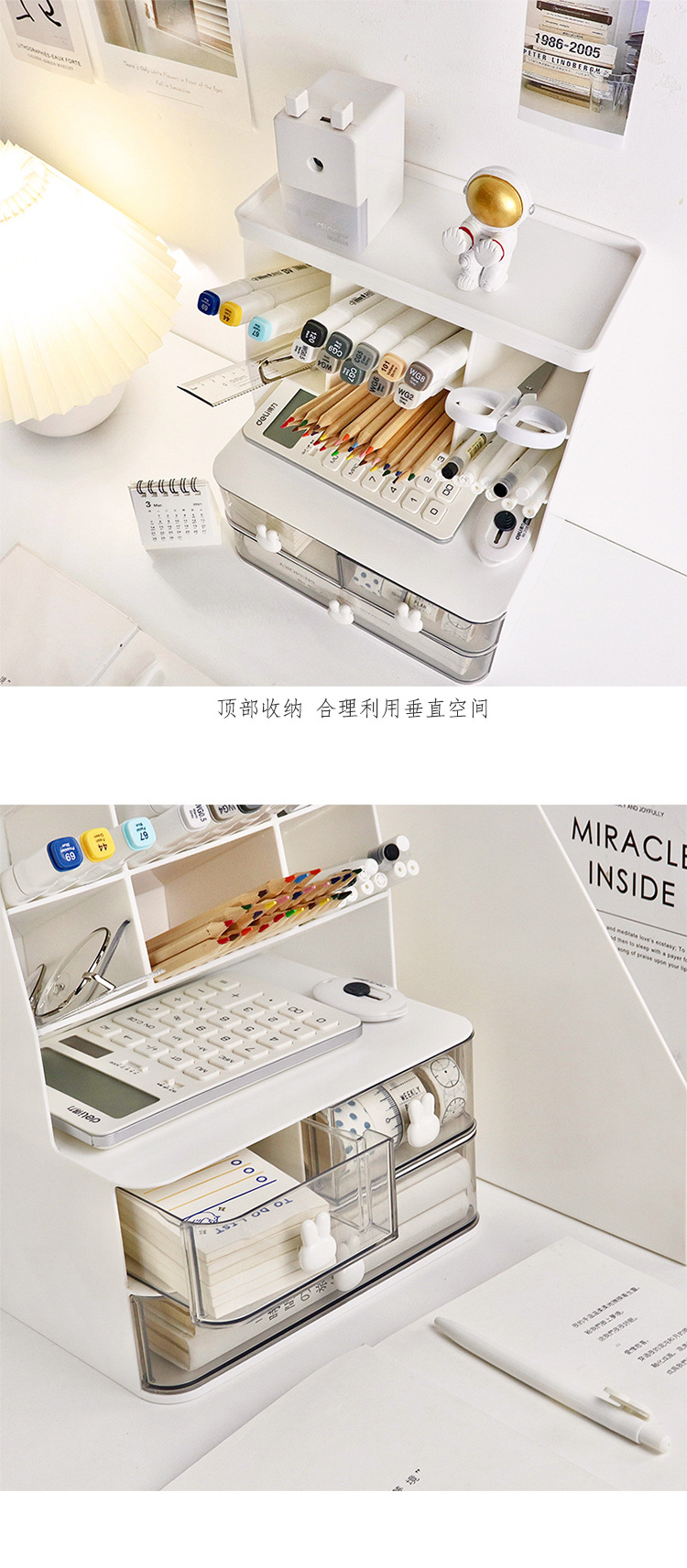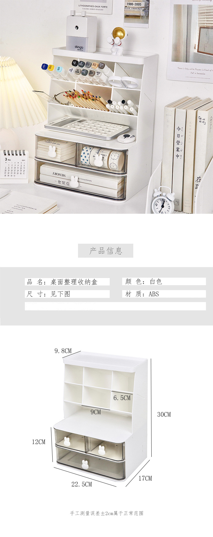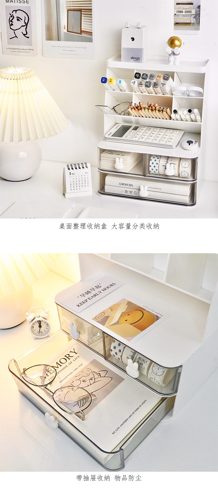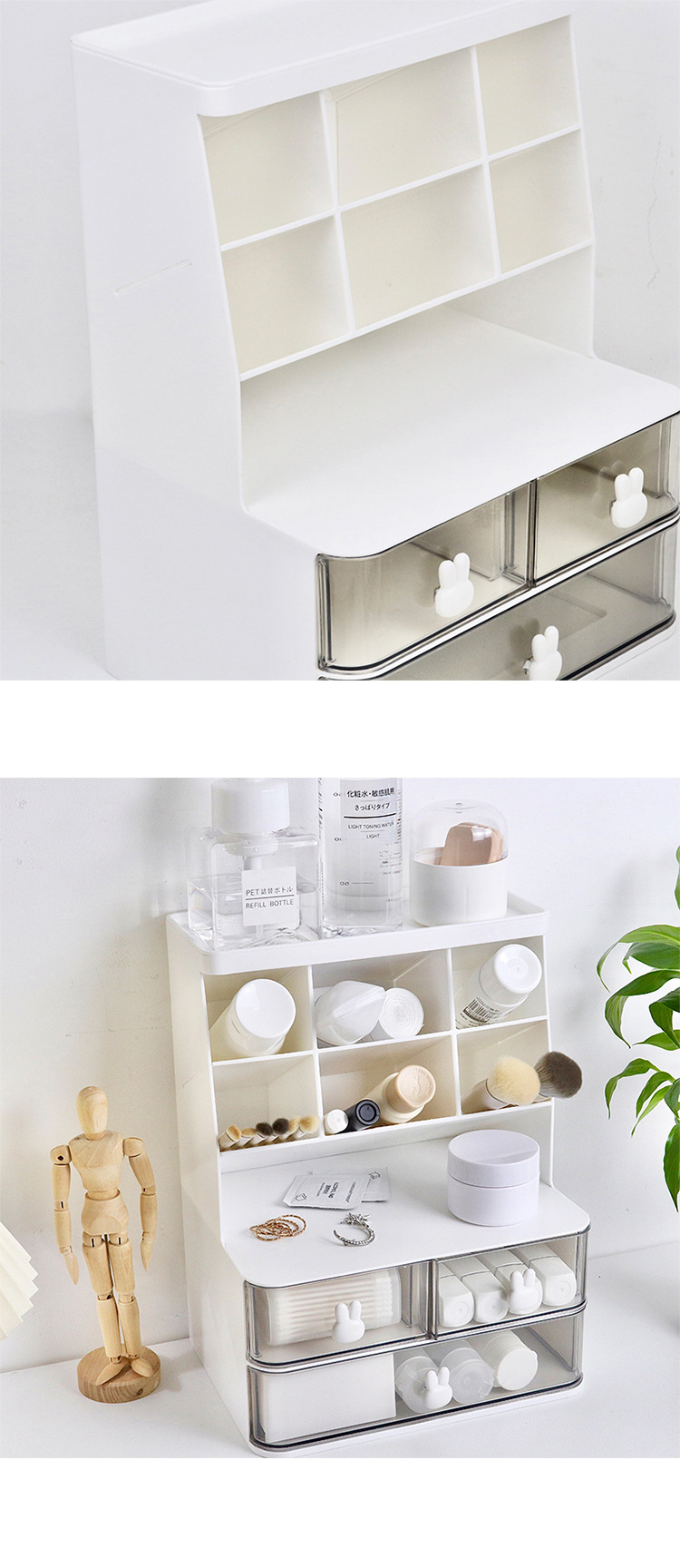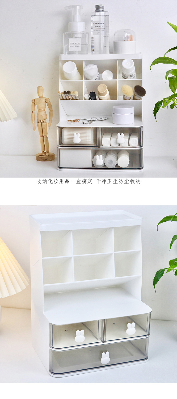 Conejo de escritorio de doble capa estante de almacenamiento transparente tipo cajón apertura esencial dormitorio de estudiantes almacenamiento cosmético