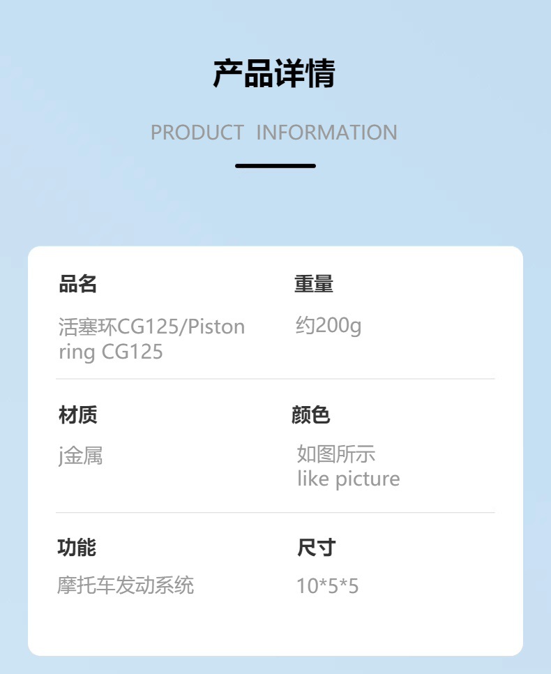 cilindro de revestimiento CG125 anillo de pistón para accesorios de motor de motocicleta de triciclos