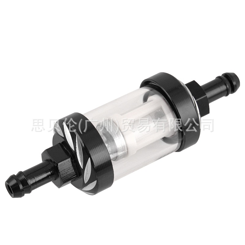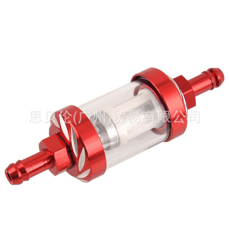 Motorcicleta filtro de gasolina universal filtro CNC modificado filtro de metal desmontable vidrio transparente rojo